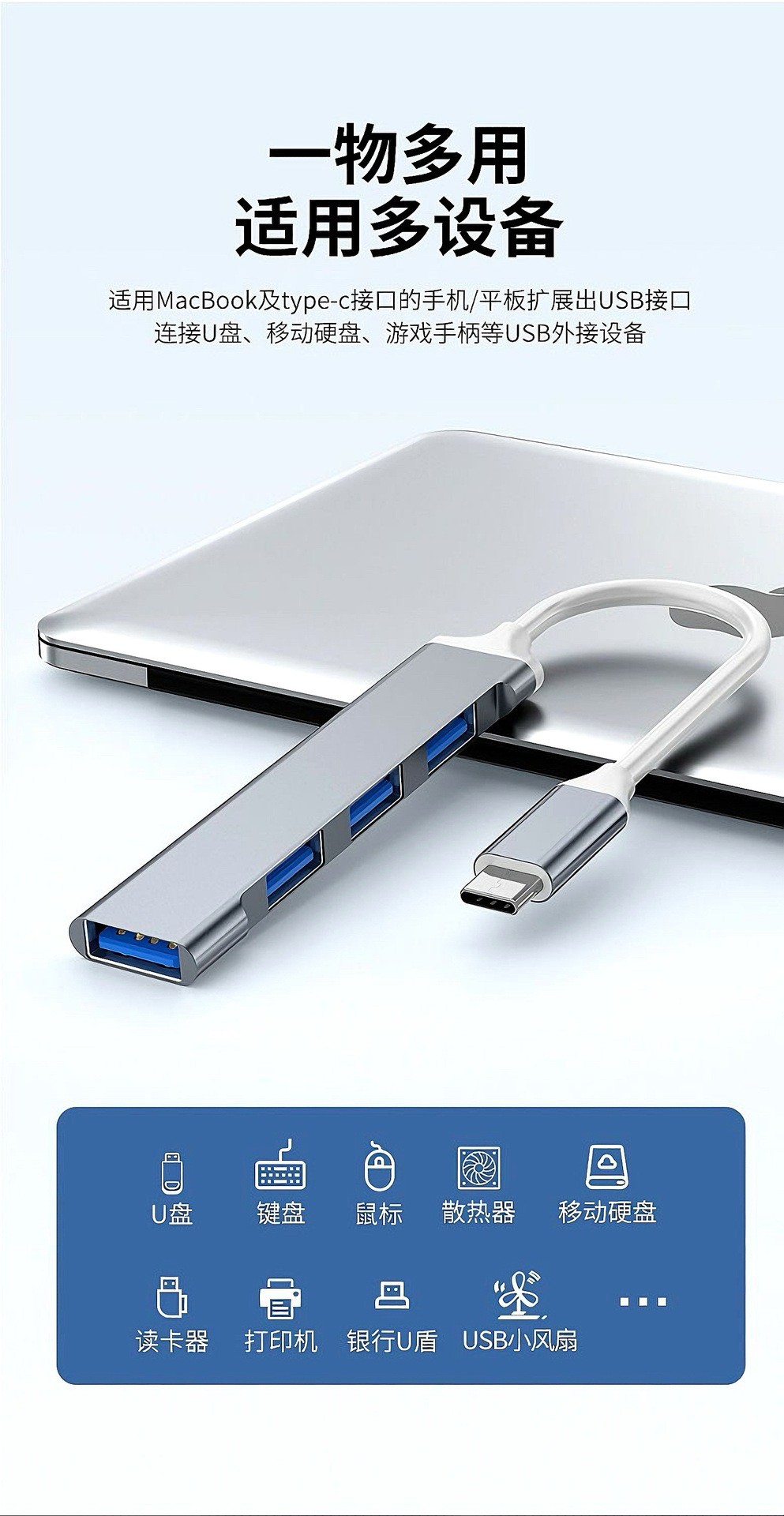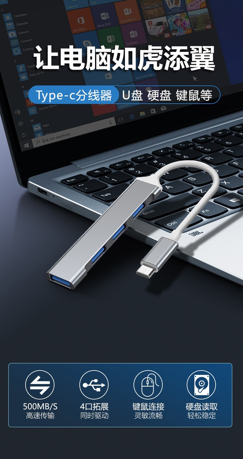 유형 C 허브 확장 도크 미니 usb3.0 허브 드래그 4 컴퓨터 액세서리스토어 가기