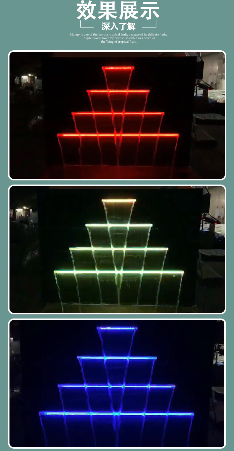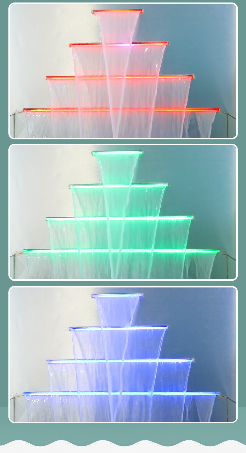 아크릴 물 커튼 벽 폭포 풍경 조명 led 다채로운 수영장 배경 벽 물 커튼 콘센트 물 벽