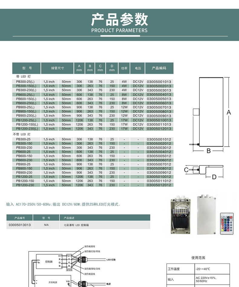• LED 조명 PB600-25/1.5 인치 없음