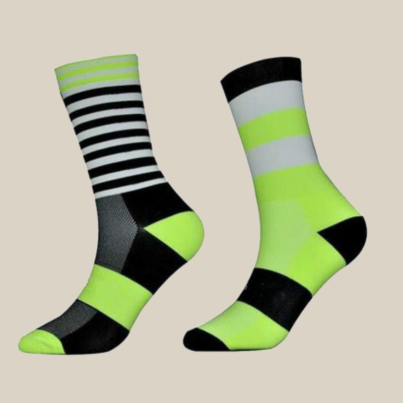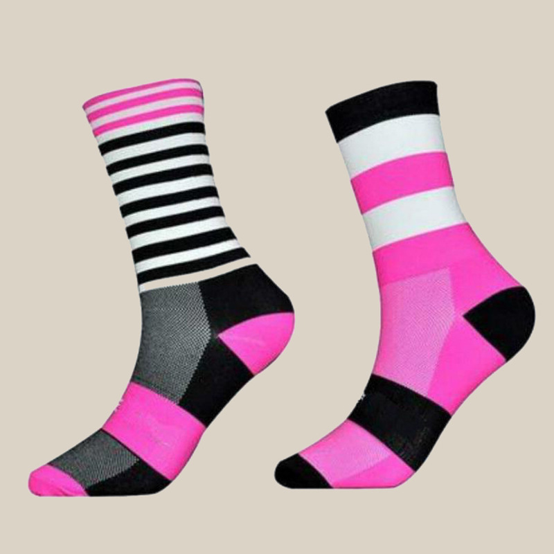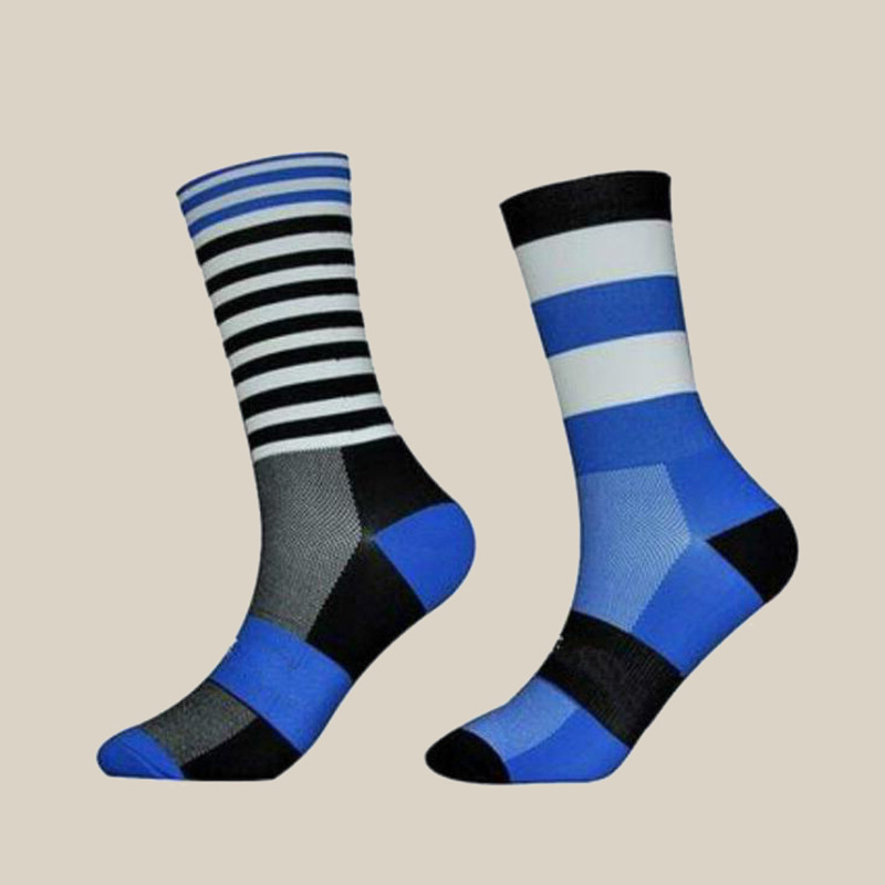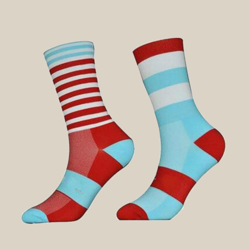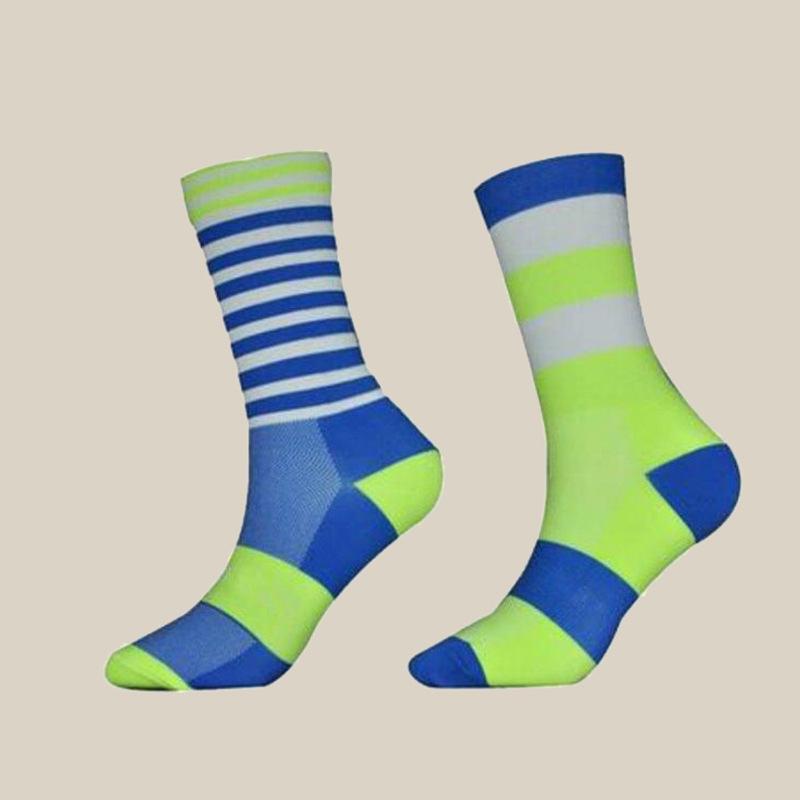 공장 도매 남녀 스포츠 압축 양말 사이클링 양말 왼쪽 및 오른쪽 발 줄무늬 양말 야외 달리기 등산 양말