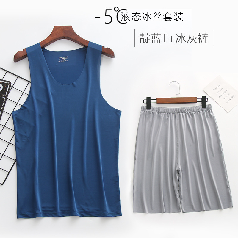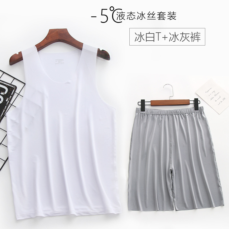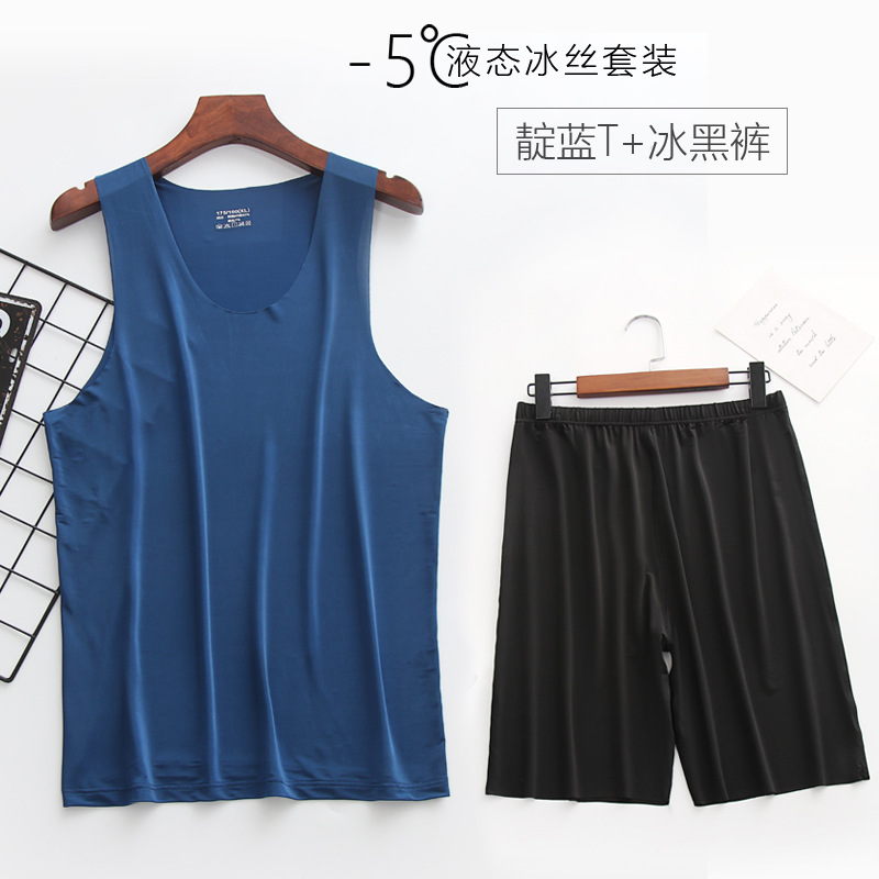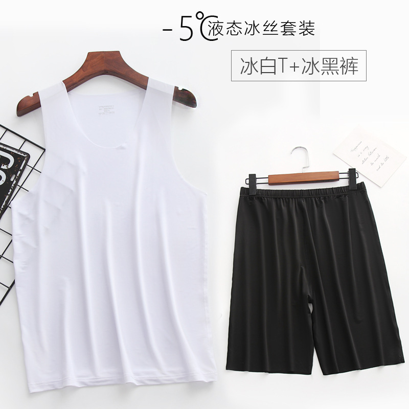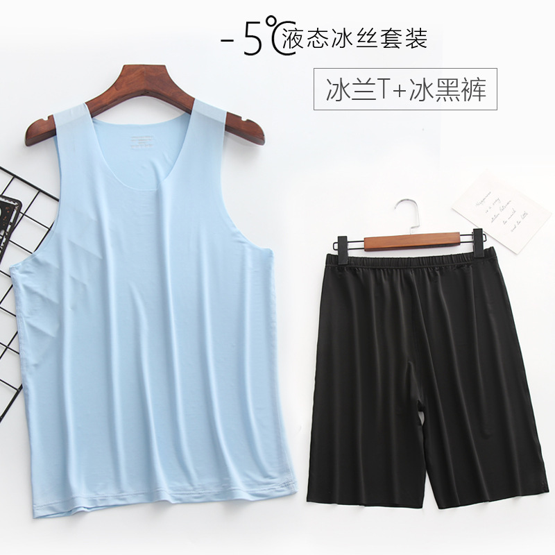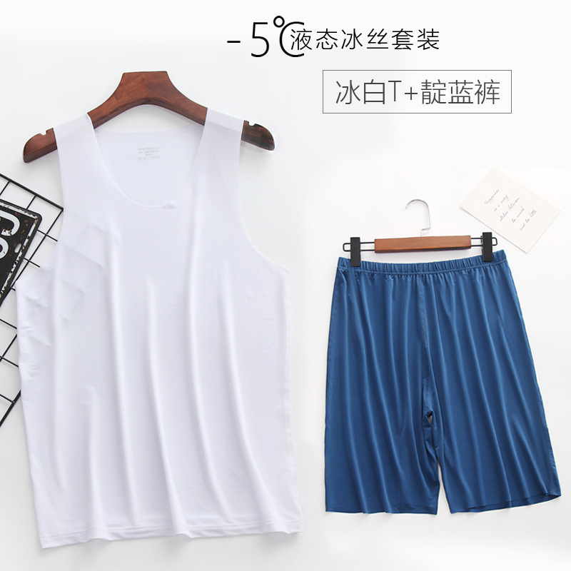 리퀴드 아이스 실크 | 여름 초박형 남성 조끼 반바지 잠옷 세트 5 민소매 조끼 가정 의류스토어 가기