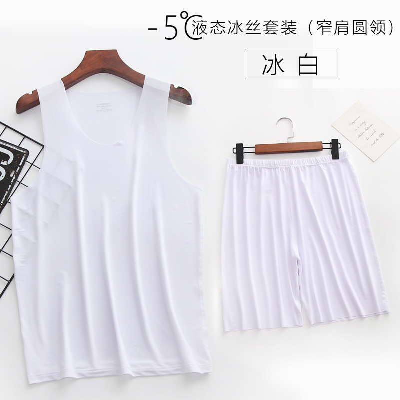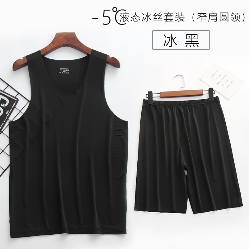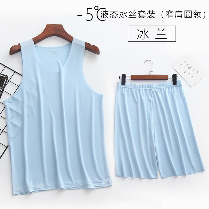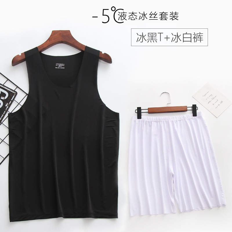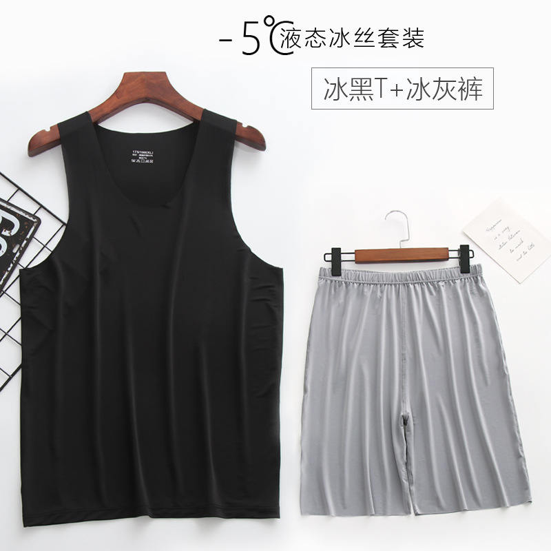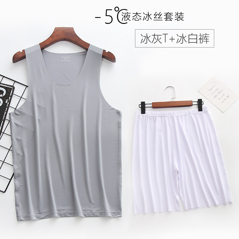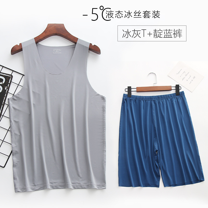 리퀴드 아이스 실크 | 여름 초박형 남성 조끼 반바지 잠옷 세트 5 민소매 조끼 가정 의류스토어 가기