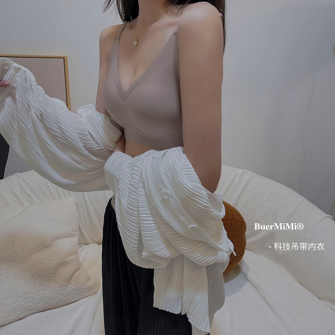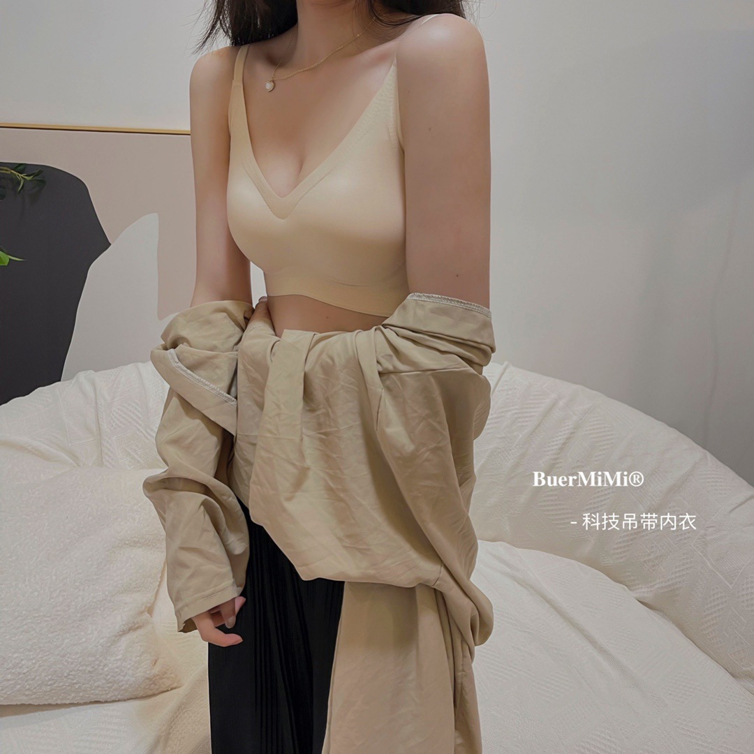 3488 # 기술 슬링 속옷 라텍스 브라 여름 젤리 작은 V-넥 여성용 속옷 브라 스틸 링없이스토어 가기