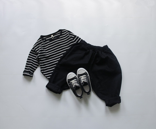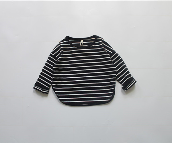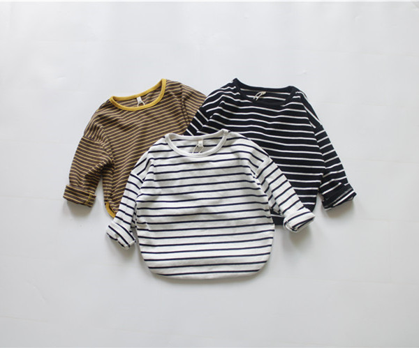2026 봄 신상 아동용 베이스 레이어 셔츠 한국 스타일 여아 상의 넓은 라운드넥 스트라이프 남아 티셔츠 루즈핏 면스토어 가기