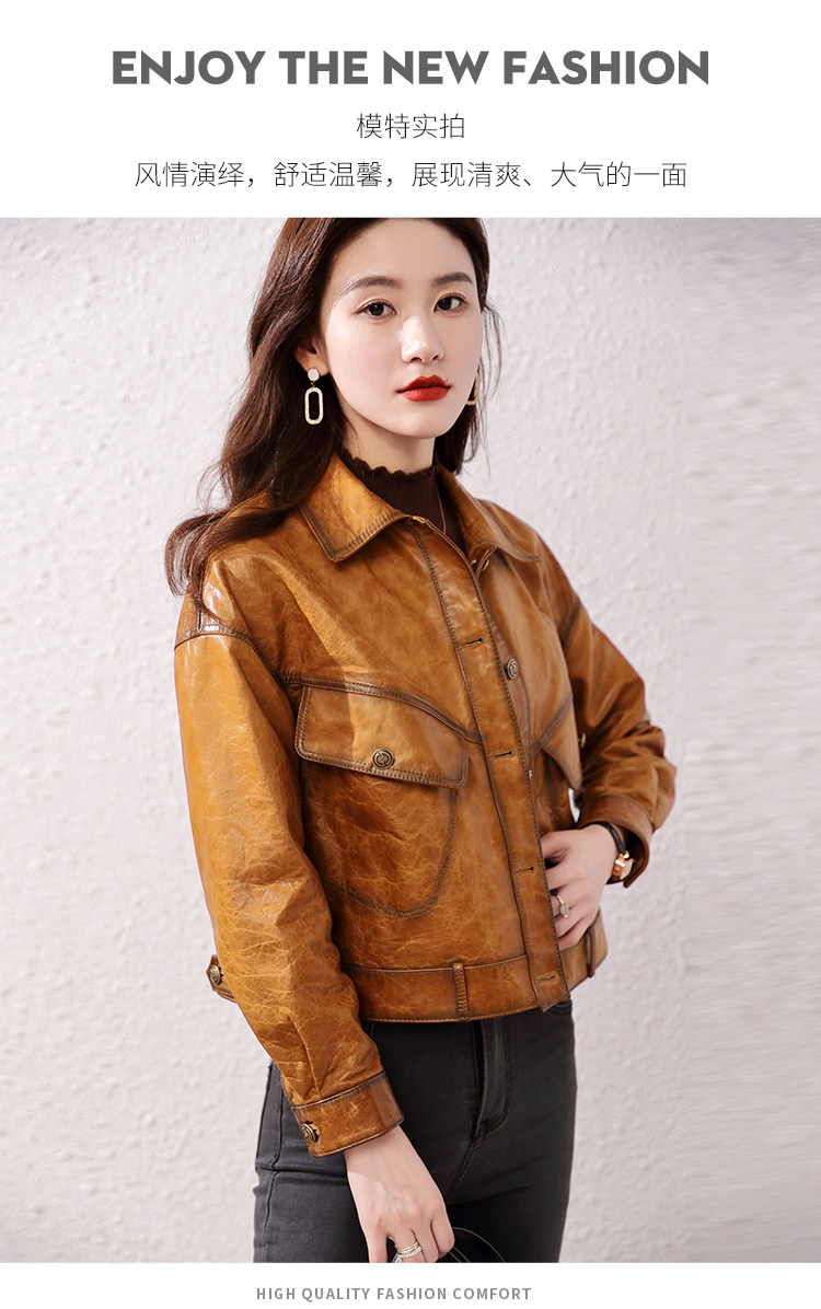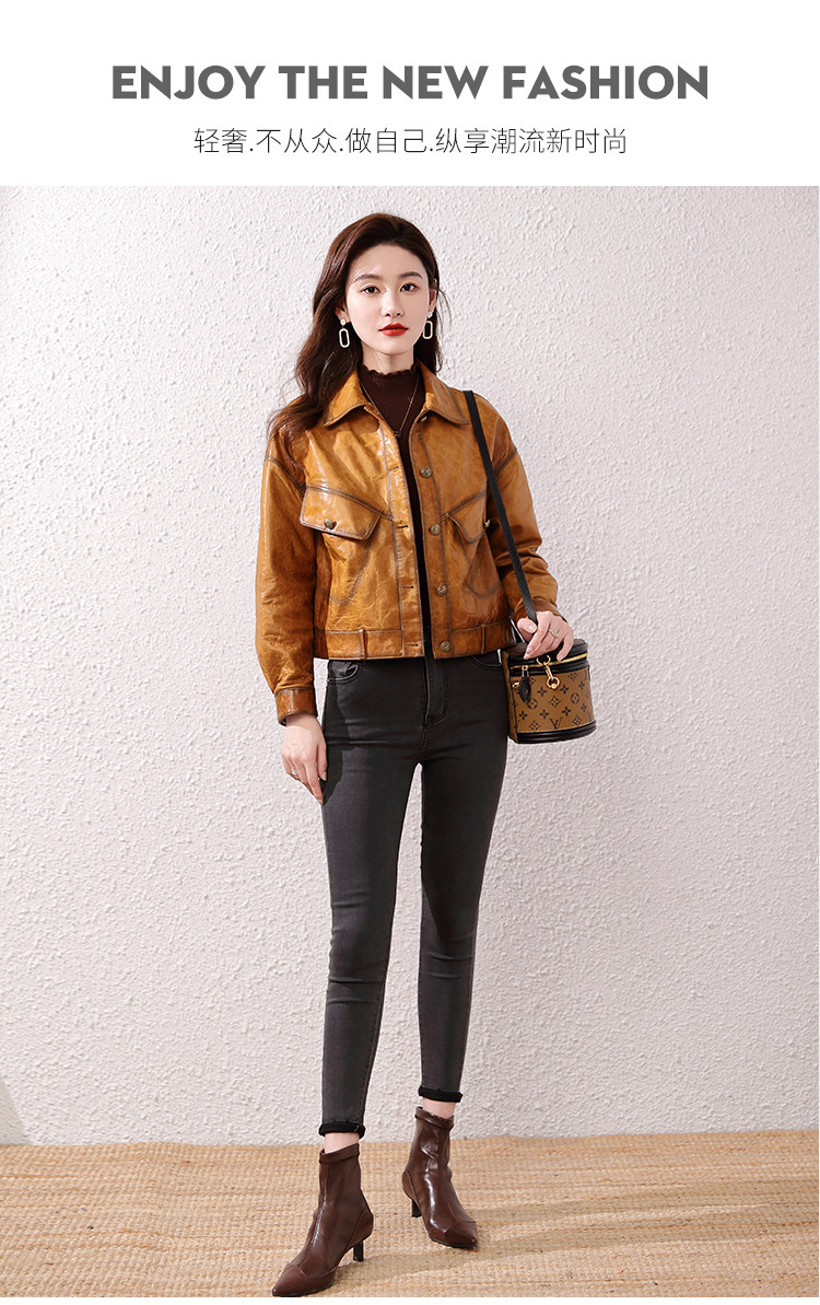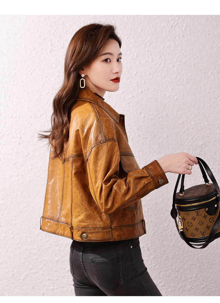 2026 신형 허닝 천연 가죽 여성용 짧은 오일왁스 양가죽 캐주얼 라펠 가죽 재킷스토어 가기