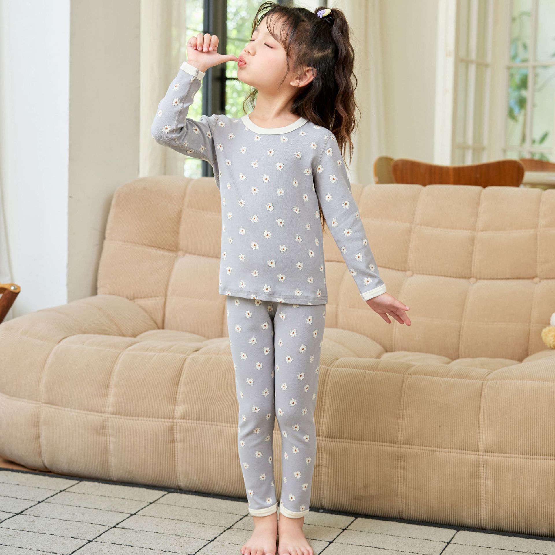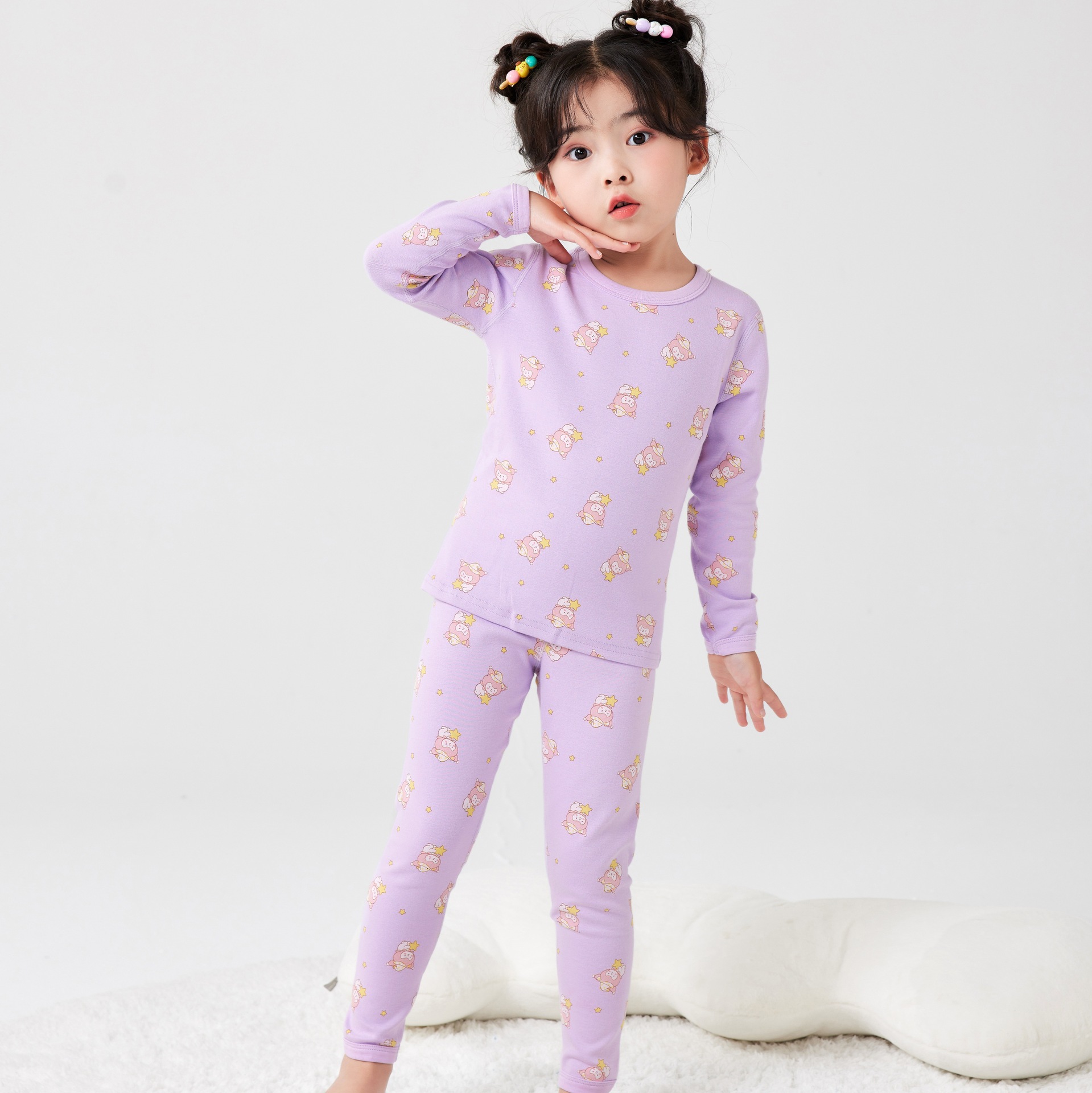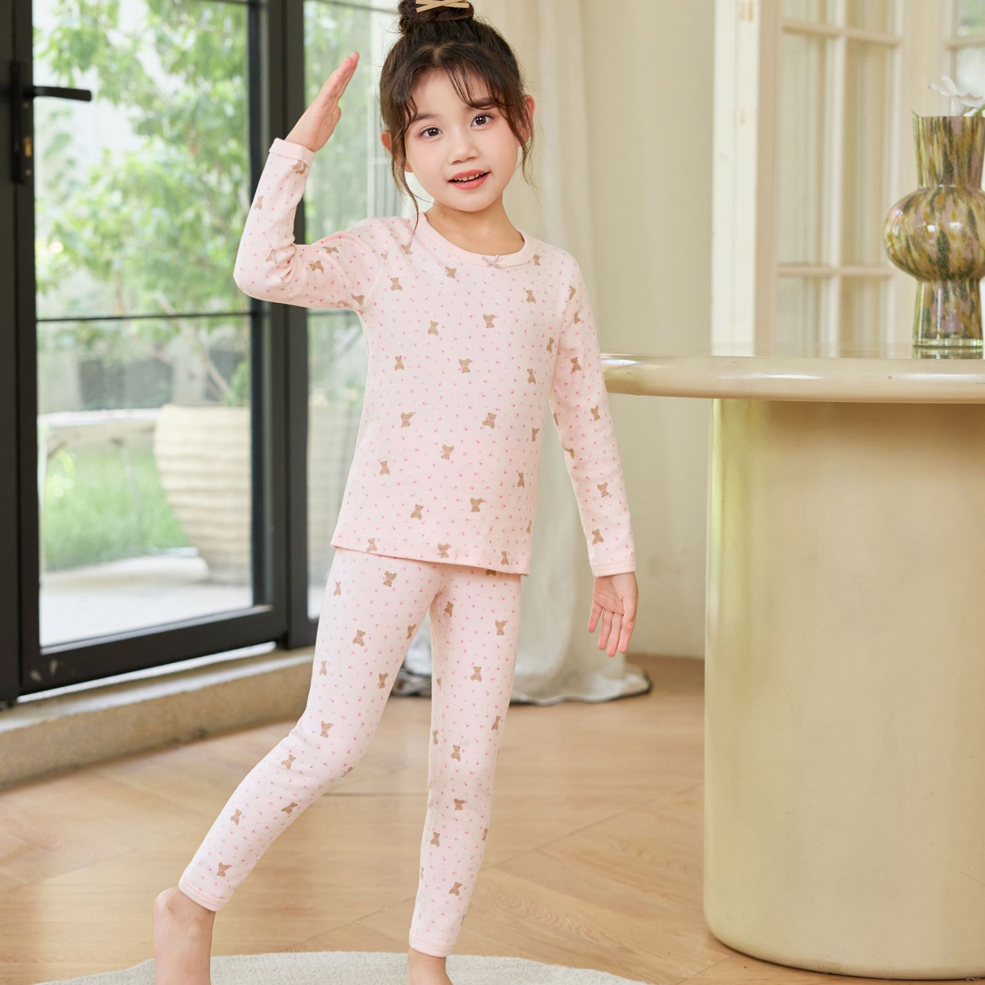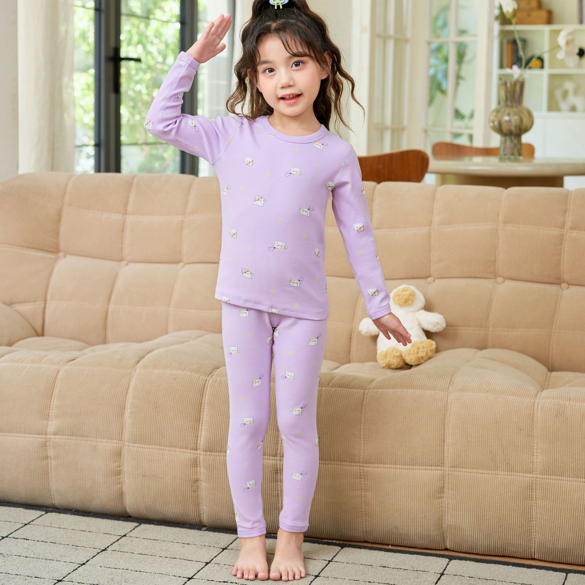 2025 아동용 양모 기모 내의, 순면 A급 아동용 잠옷, 순면 무봉제 기모 내의, 만화 디자인스토어 가기