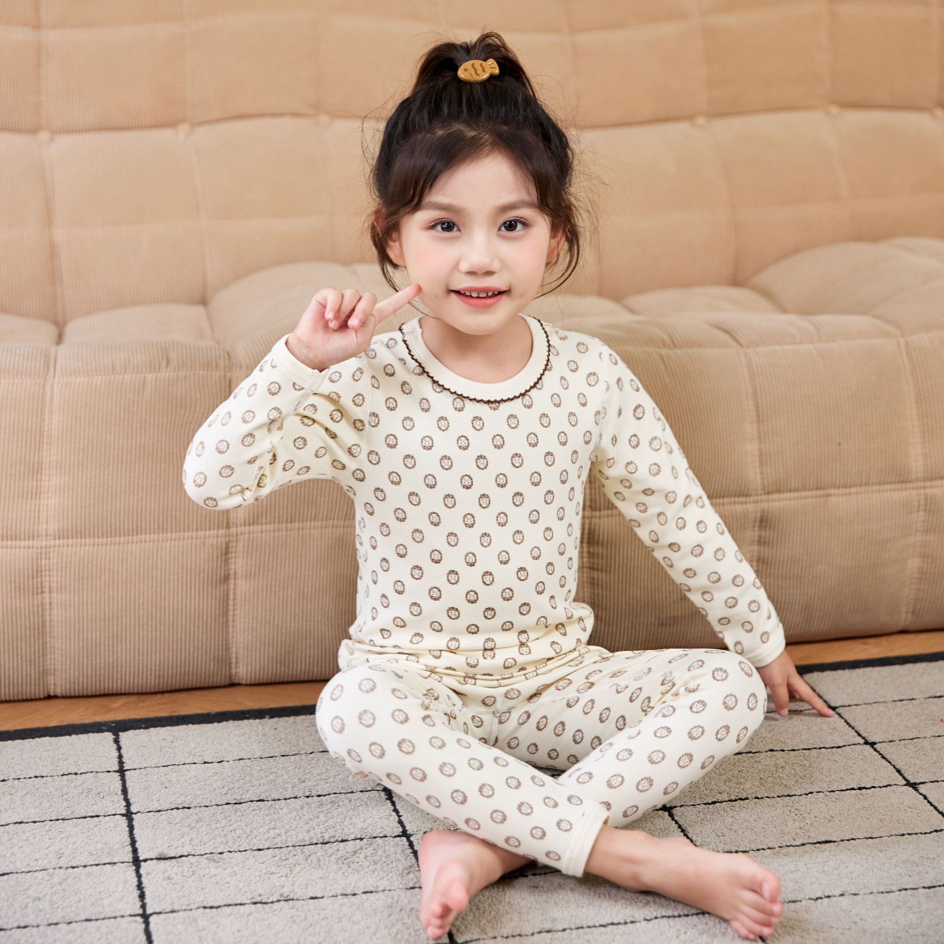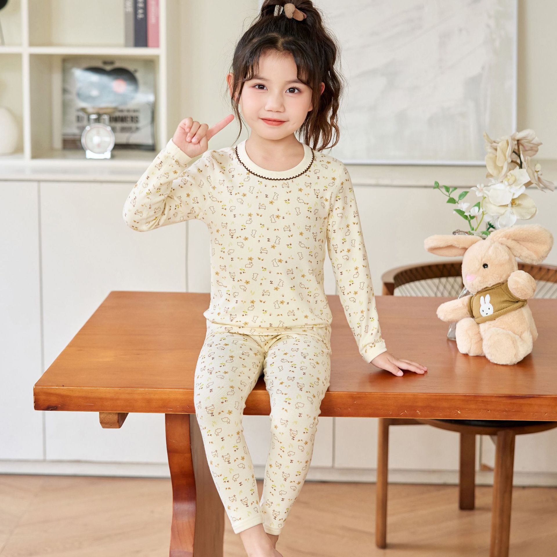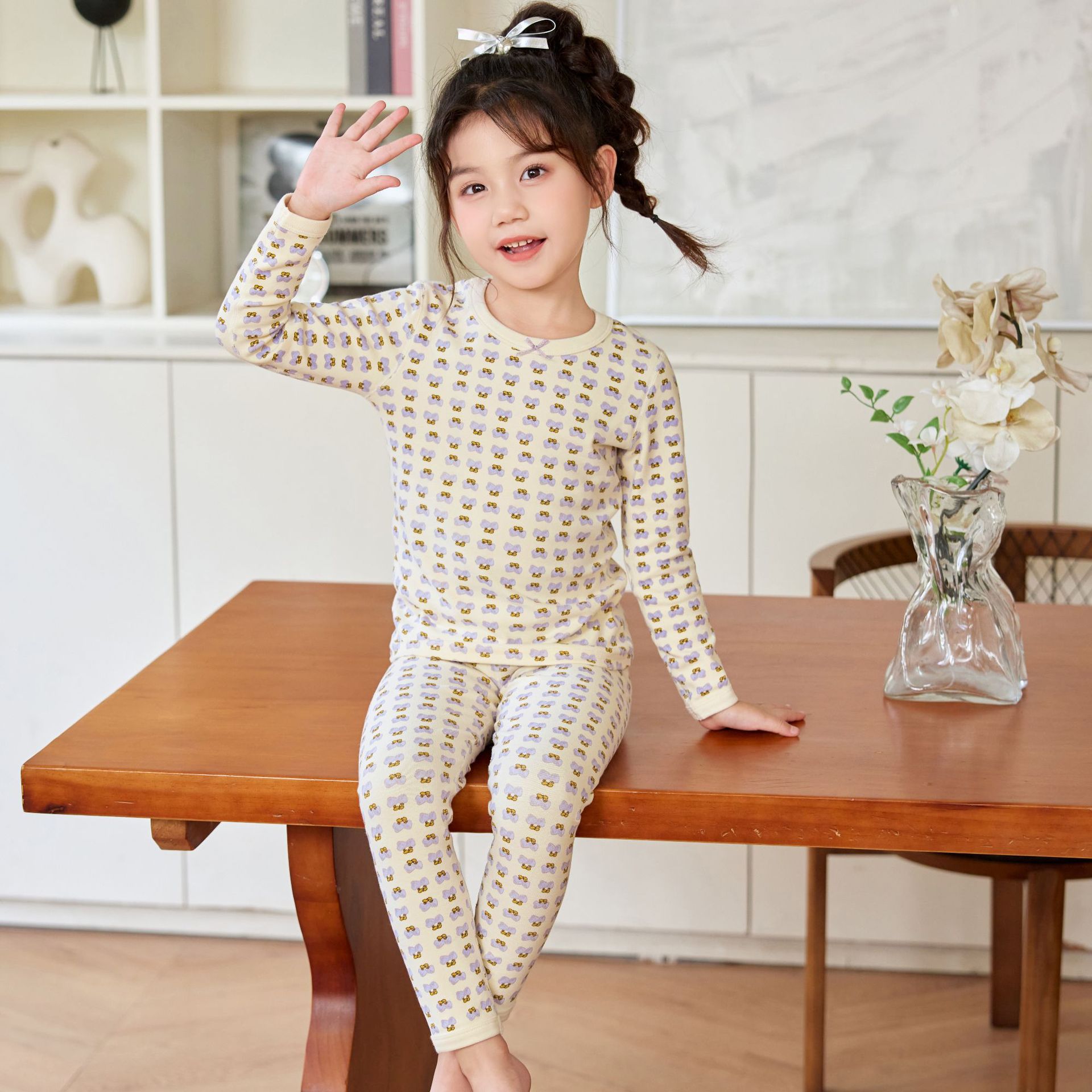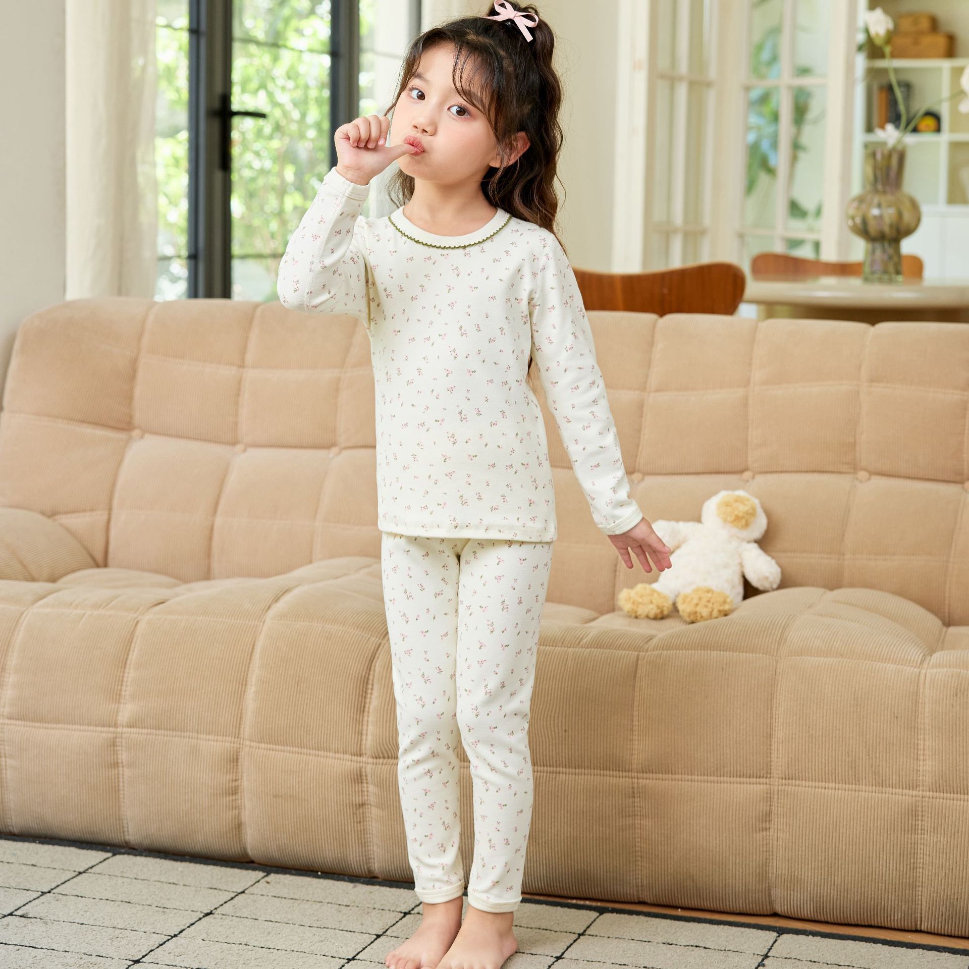2025 아동용 양모 기모 내의, 순면 A급 아동용 잠옷, 순면 무봉제 기모 내의, 만화 디자인스토어 가기