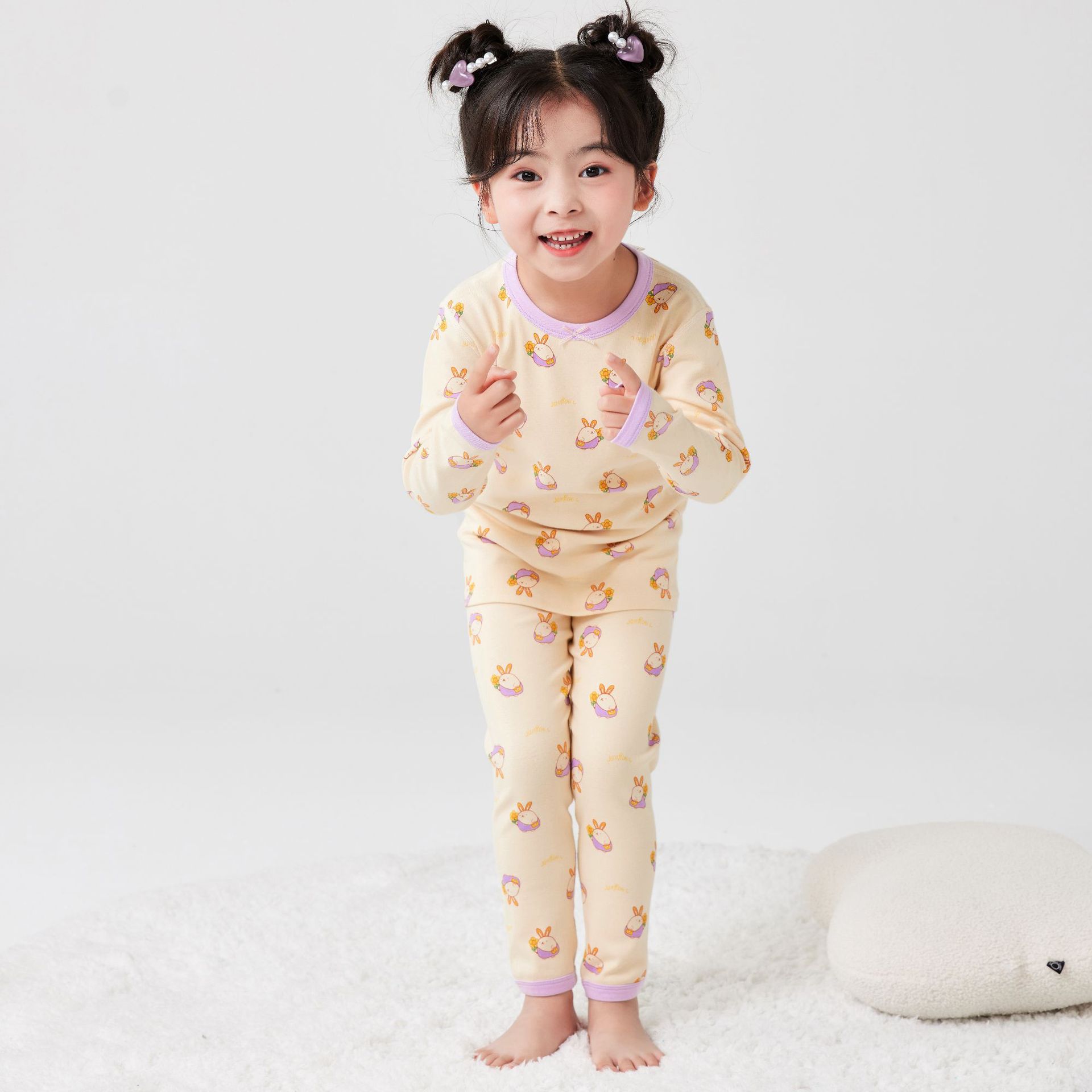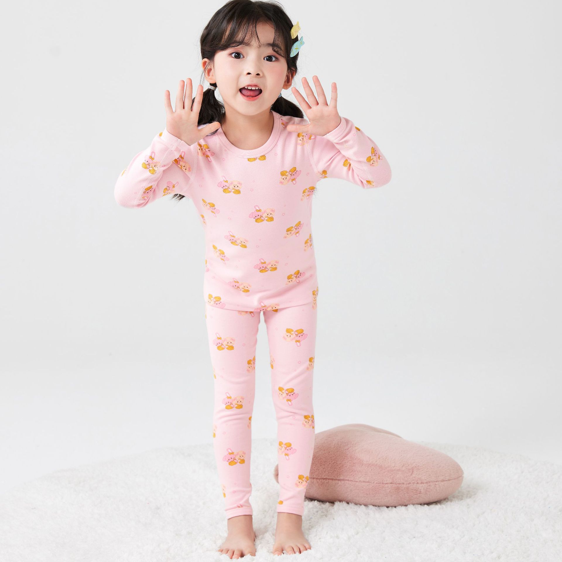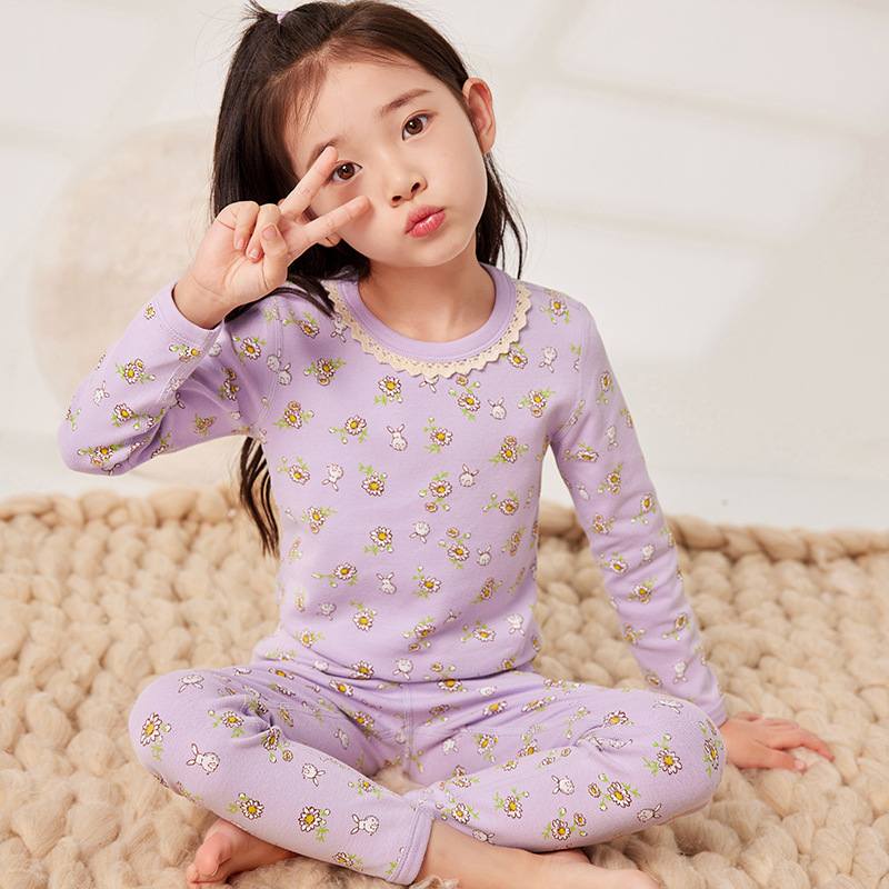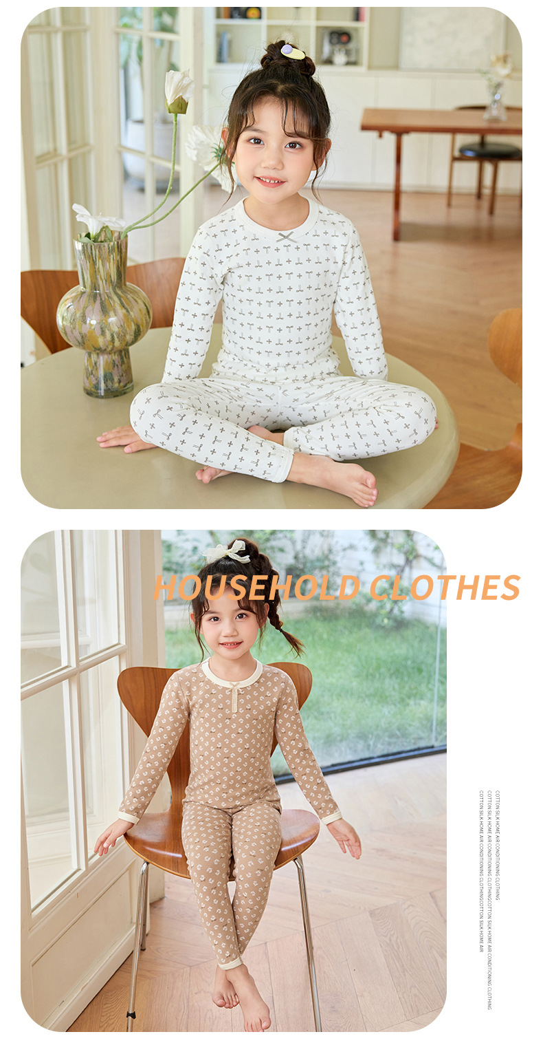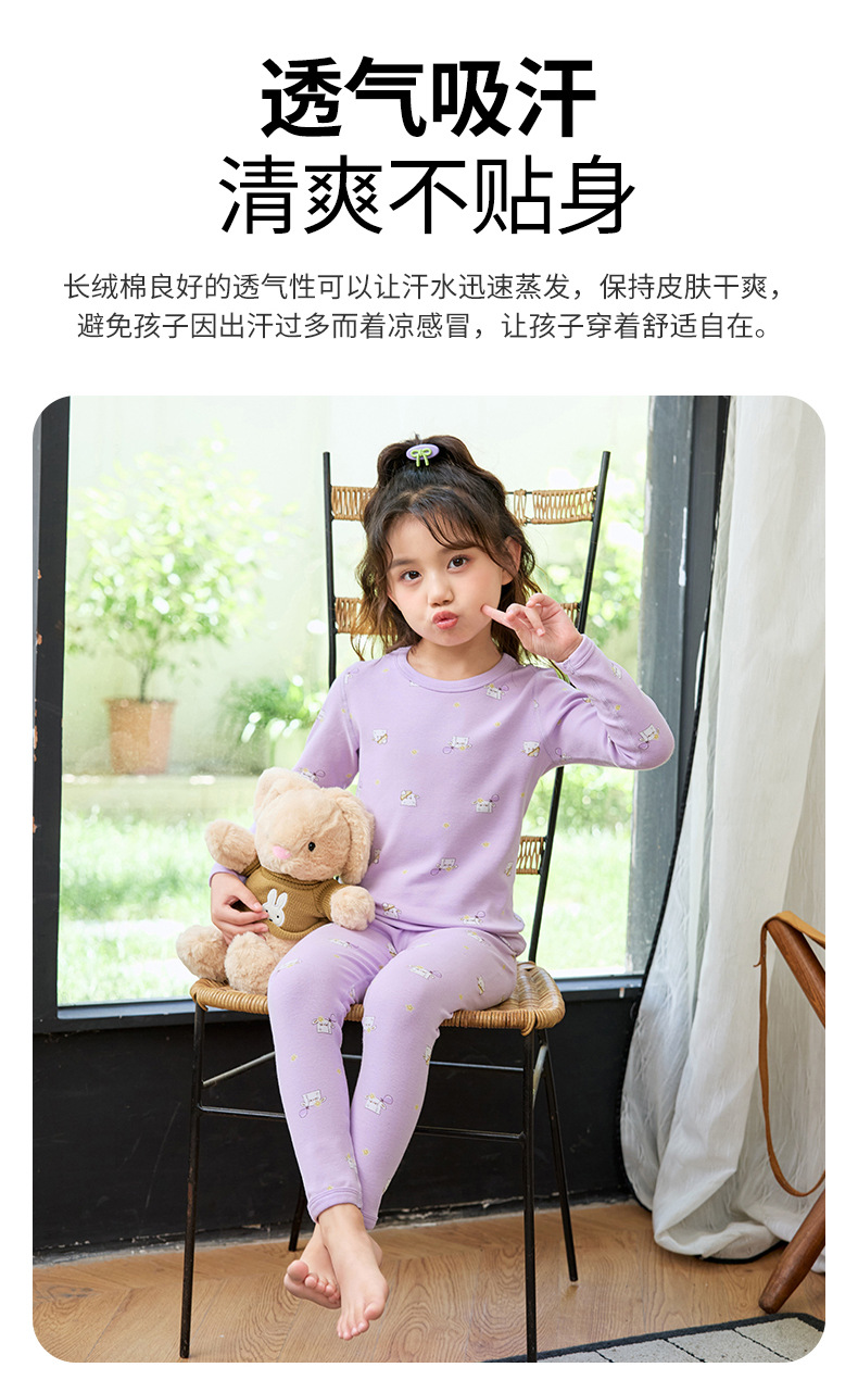 2025 아동용 양모 기모 내의, 순면 A급 아동용 잠옷, 순면 무봉제 기모 내의, 만화 디자인