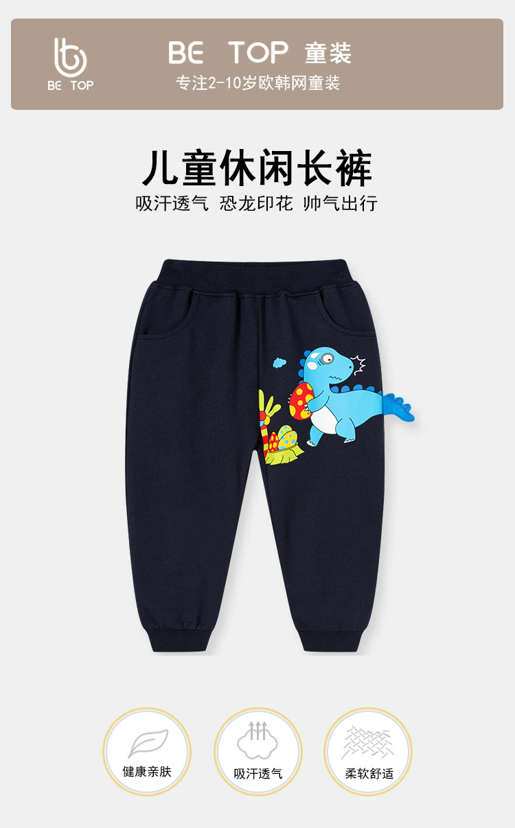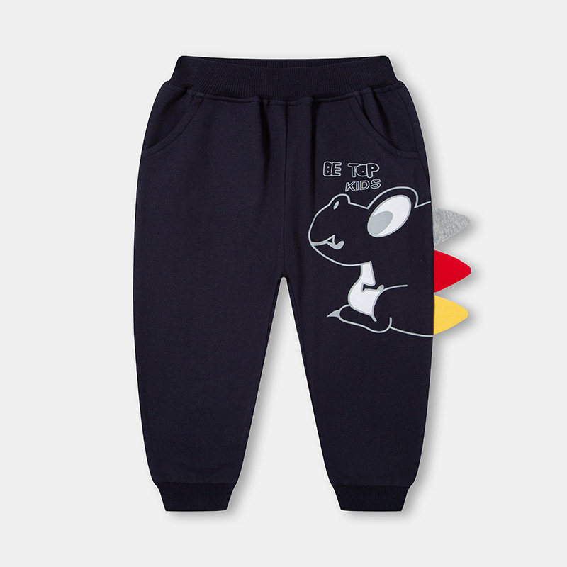 아동 바지 2025 가을 새로운 한국어 스타일 아동 스포츠 바지 공룡 만화 캐주얼 바지 소년 니트 스웨트 바지