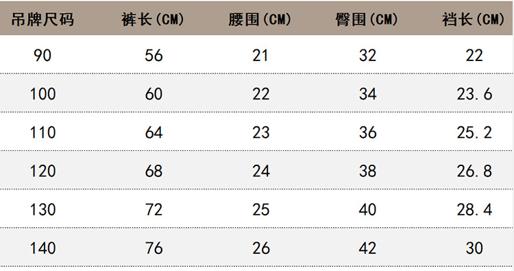 尺寸表