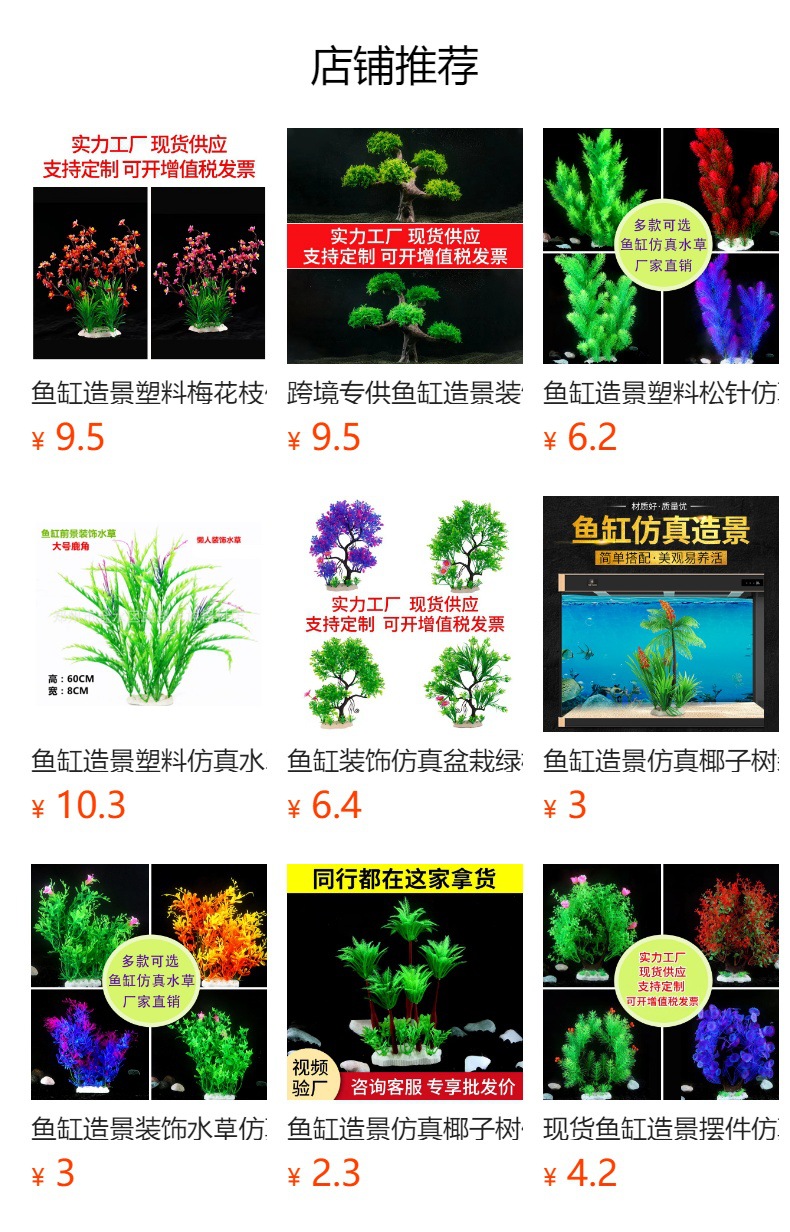 어항 조경 장식품, 인조 수초 장식, 플라스틱 가짜 꽃 식물 조경 세트 도매, 가정용 인조 조경스토어 가기