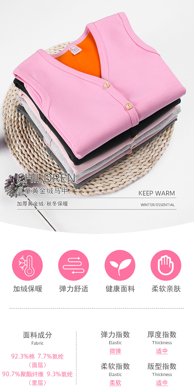소년과 소녀를위한 어린이 조끼 기모 큰 어린이를위한 단색 두꺼운 가을과 겨울 따뜻한 골드 벨벳 겉옷 조끼스토어 가기
