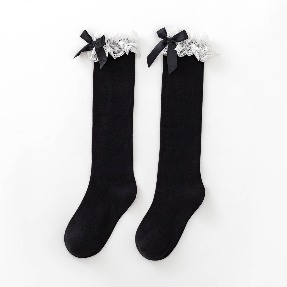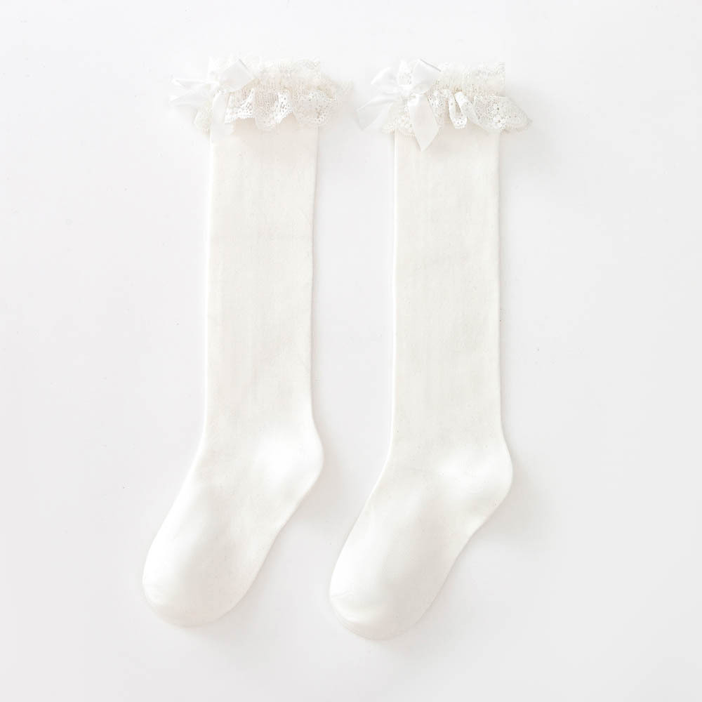 화이트 레이스 로리타 새끼 양말 jk 양말 여성용 긴 튜브 레이스 보우 면 양말 반 다리 로리타