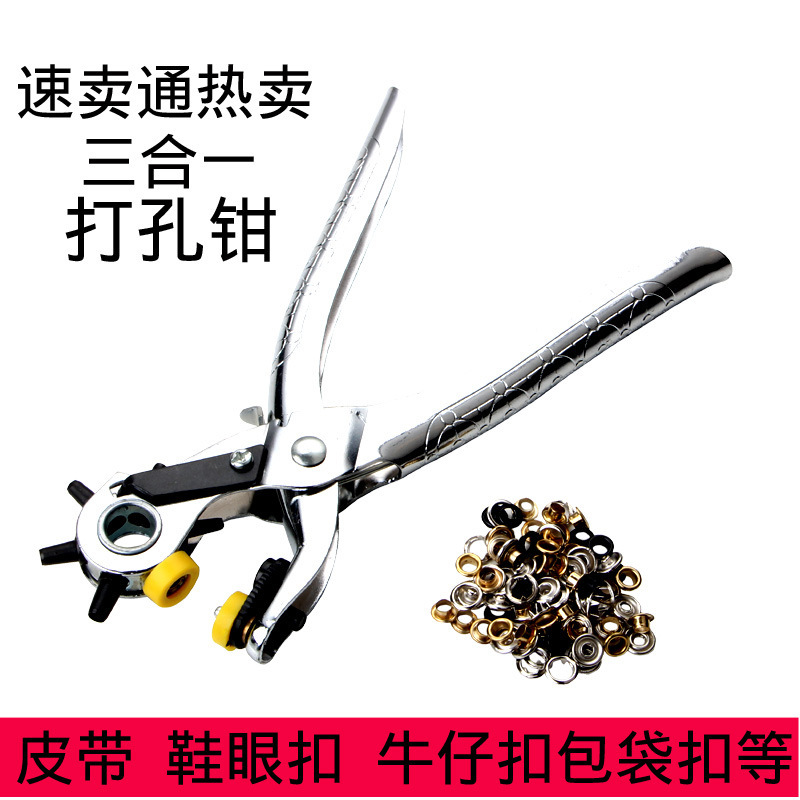 라운드 홀 3-in -1 다기능 펀칭 펜치 아이 신발 구멍 펜서 리벳 펜서 가죽 벨트 펀칭 펜치스토어 가기