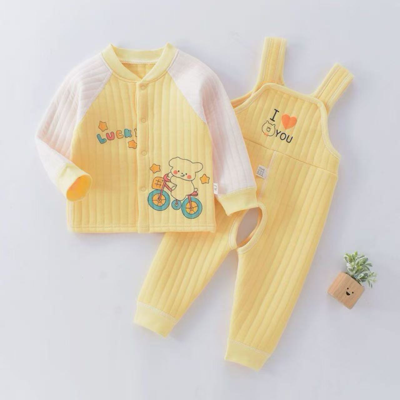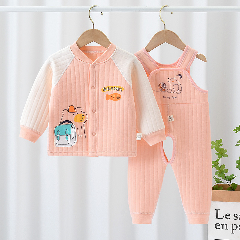 아기 따뜻한 옷 세트 두꺼운 3 층 따뜻한 스트랩 가을/겨울 아기 면 가을 세트 신상품