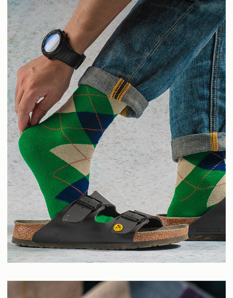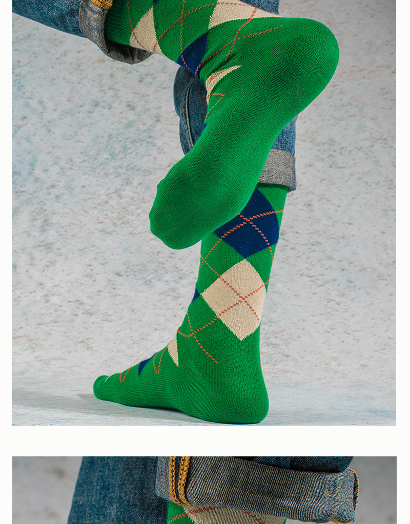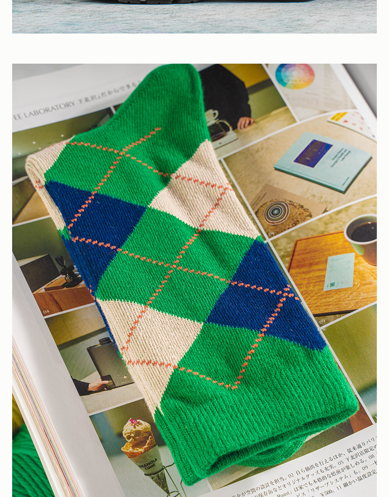 국경 간 가을과 겨울 새로운 다이아몬드 뼈없는 양말 남성용 영국 스타일 격자 무늬 남성 양말 면화 양말 도매 제조 업체스토어 가기