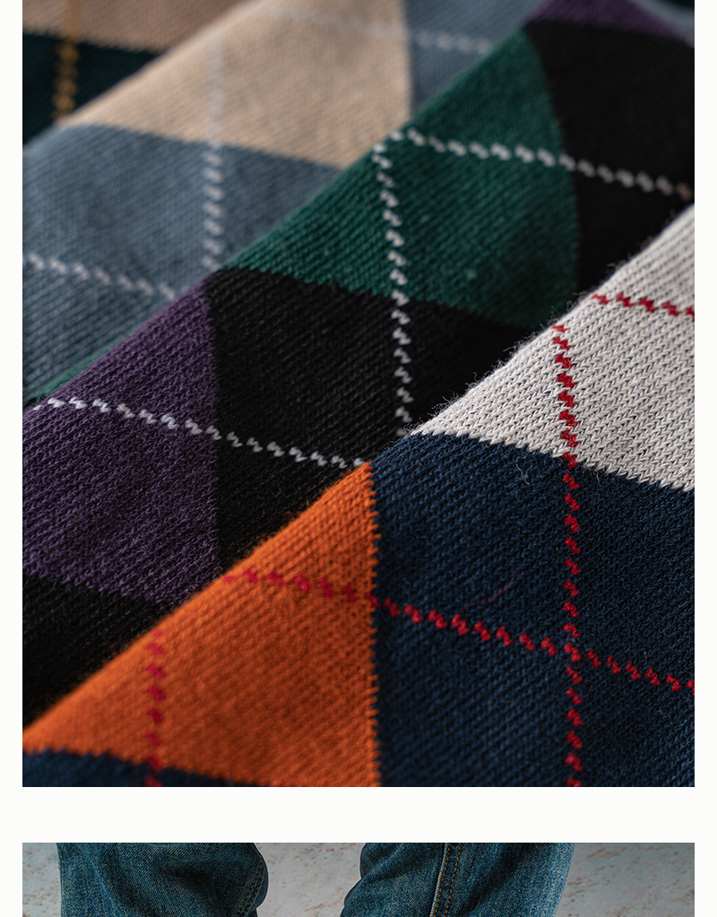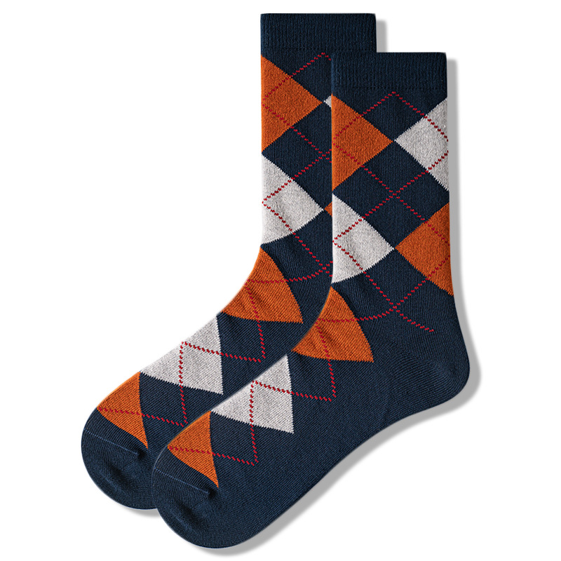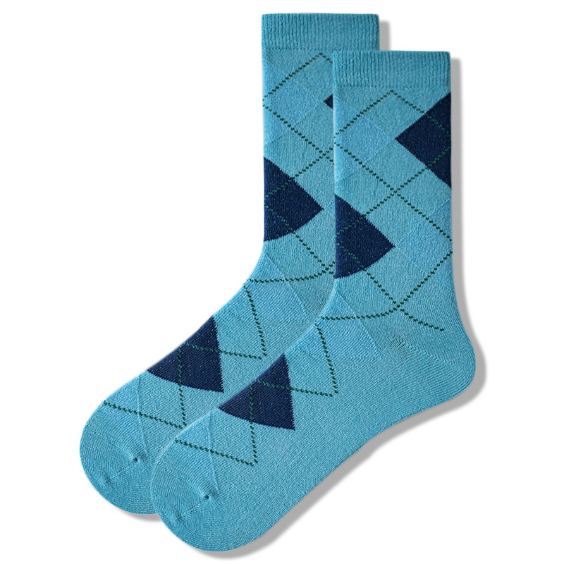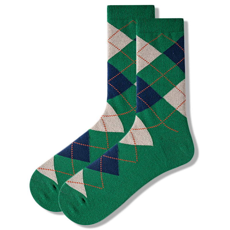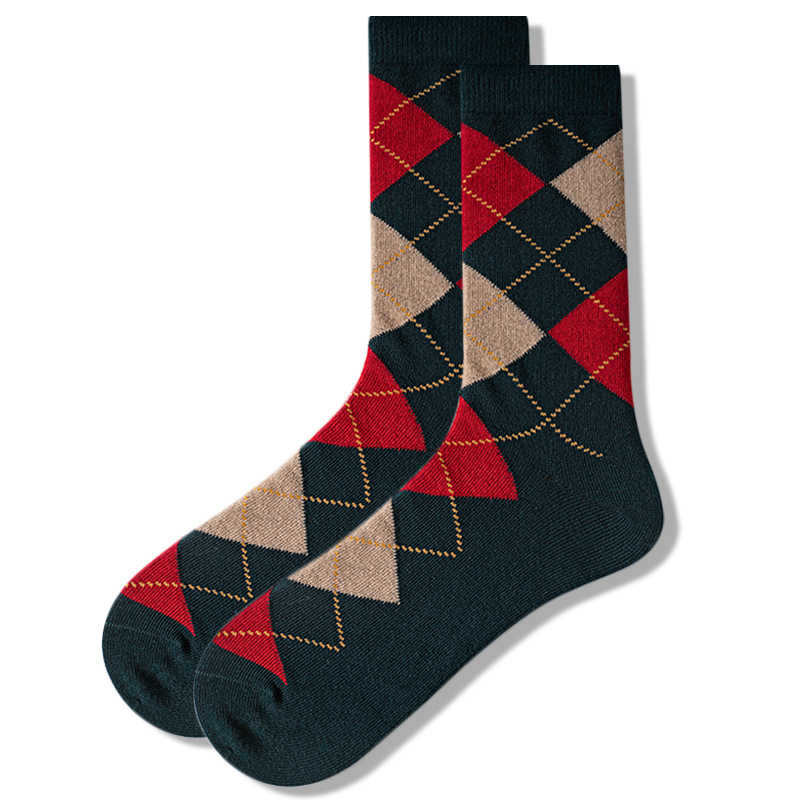 국경 간 가을과 겨울 새로운 다이아몬드 뼈없는 양말 남성용 영국 스타일 격자 무늬 남성 양말 면화 양말 도매 제조 업체