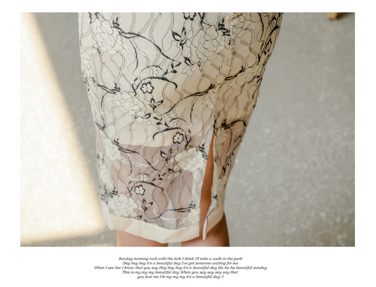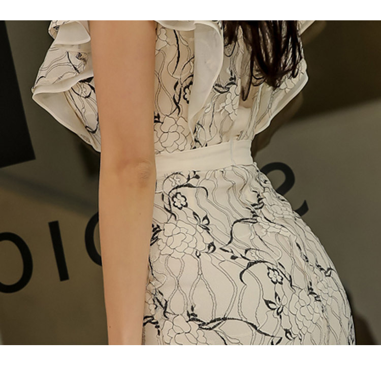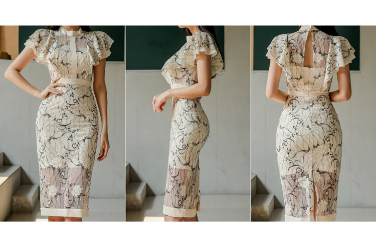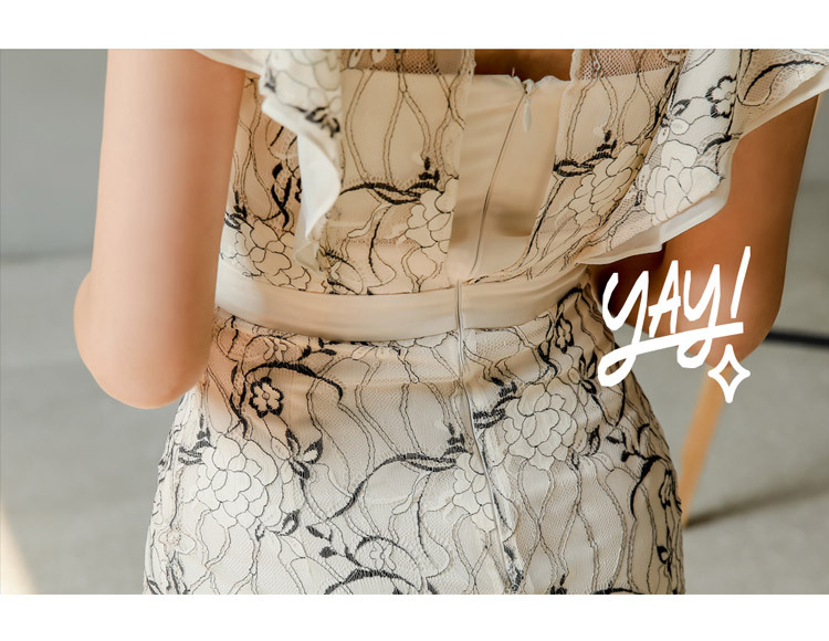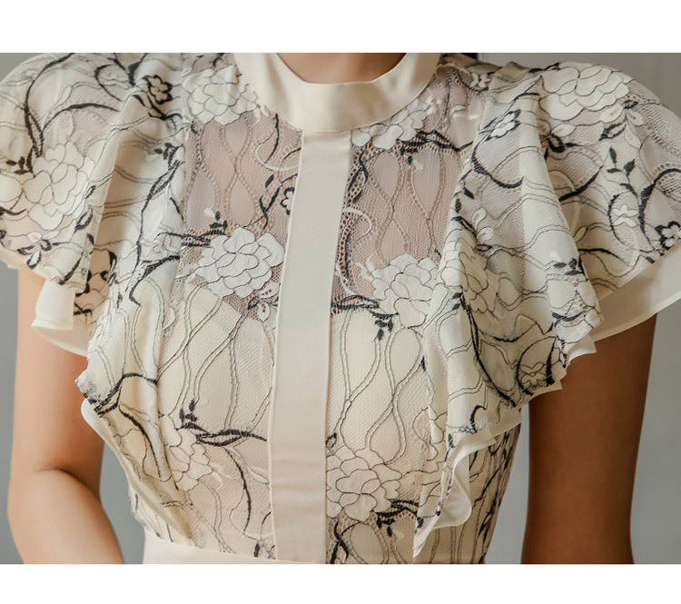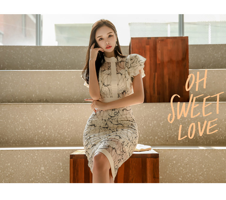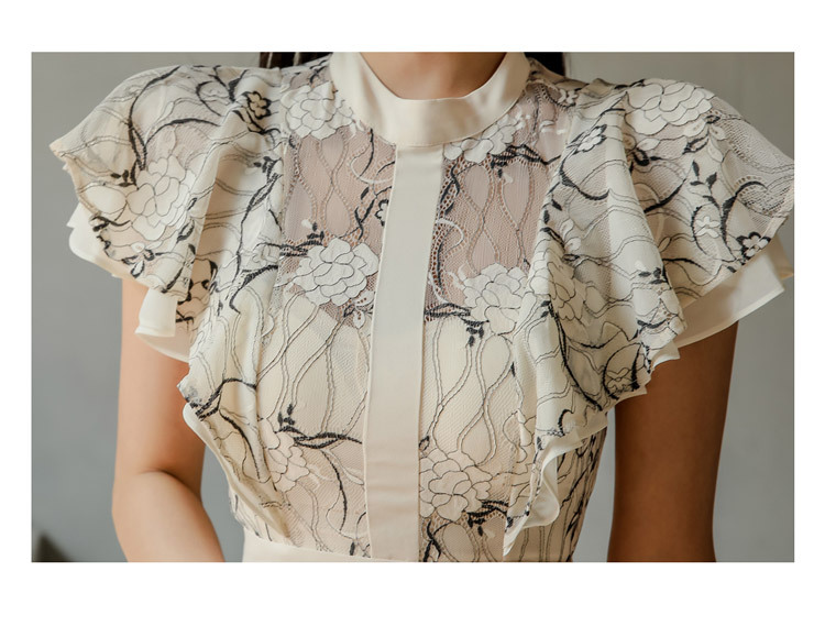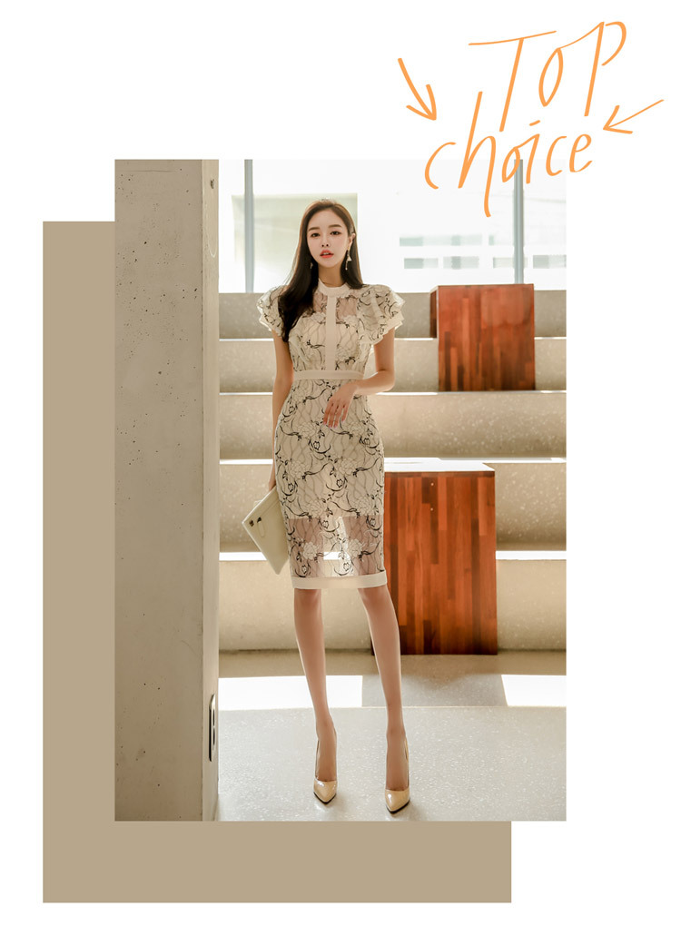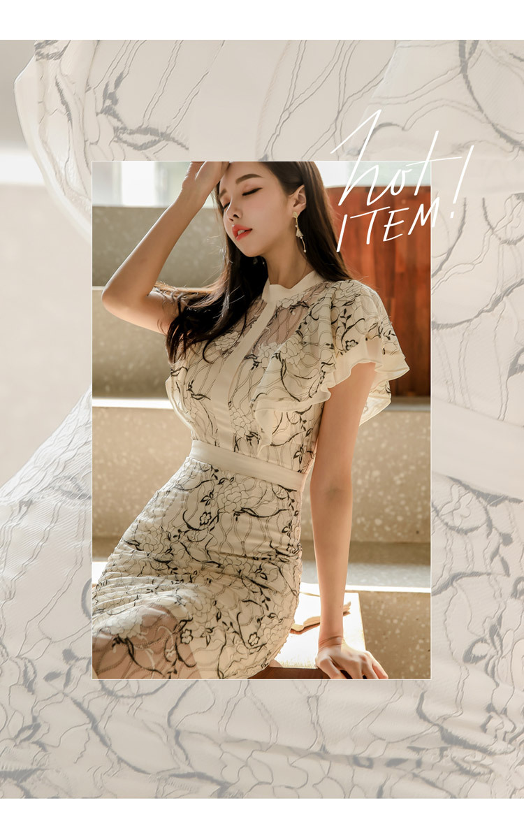 여름 새로운 한국 스타일 OL 우아한 슬림 핏 스티치 연잎 소매 패션 레이스 엉덩이 원피스스토어 가기