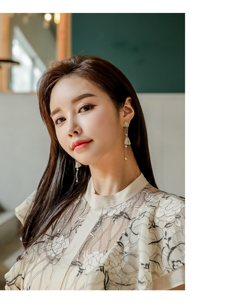 여름 새로운 한국 스타일 OL 우아한 슬림 핏 스티치 연잎 소매 패션 레이스 엉덩이 원피스
