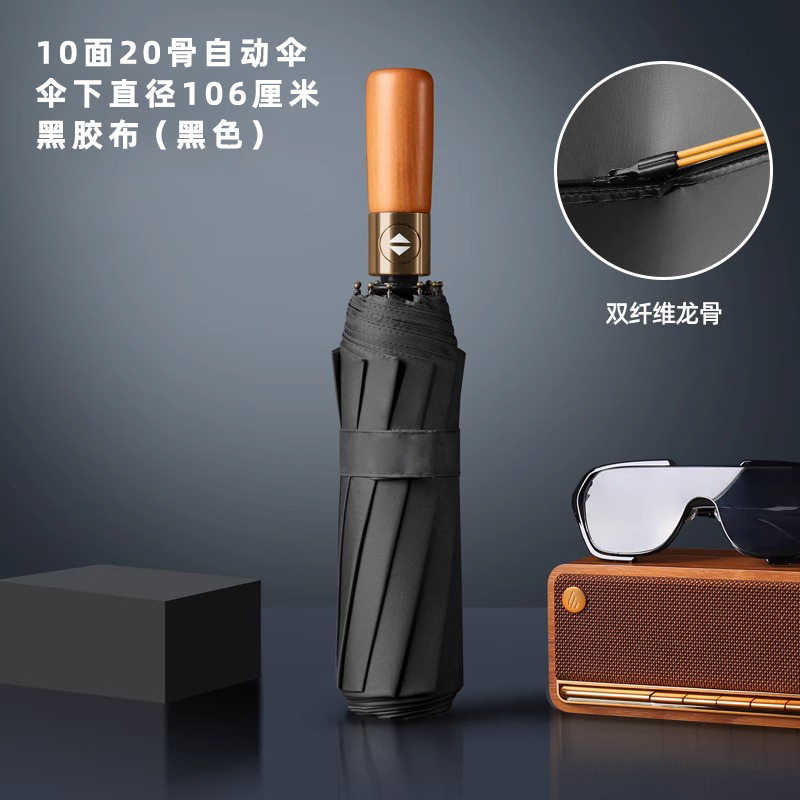 • 접이식 우산: 20갈비뼈 자동 비닐 나무 손잡이