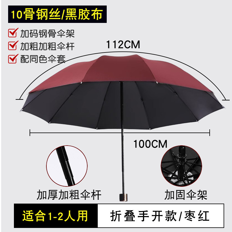 • 접는 우산: 10개 갈비뼈, 손으로 열 수 있는 검정색 접착제로 강화 및 두꺼워짐