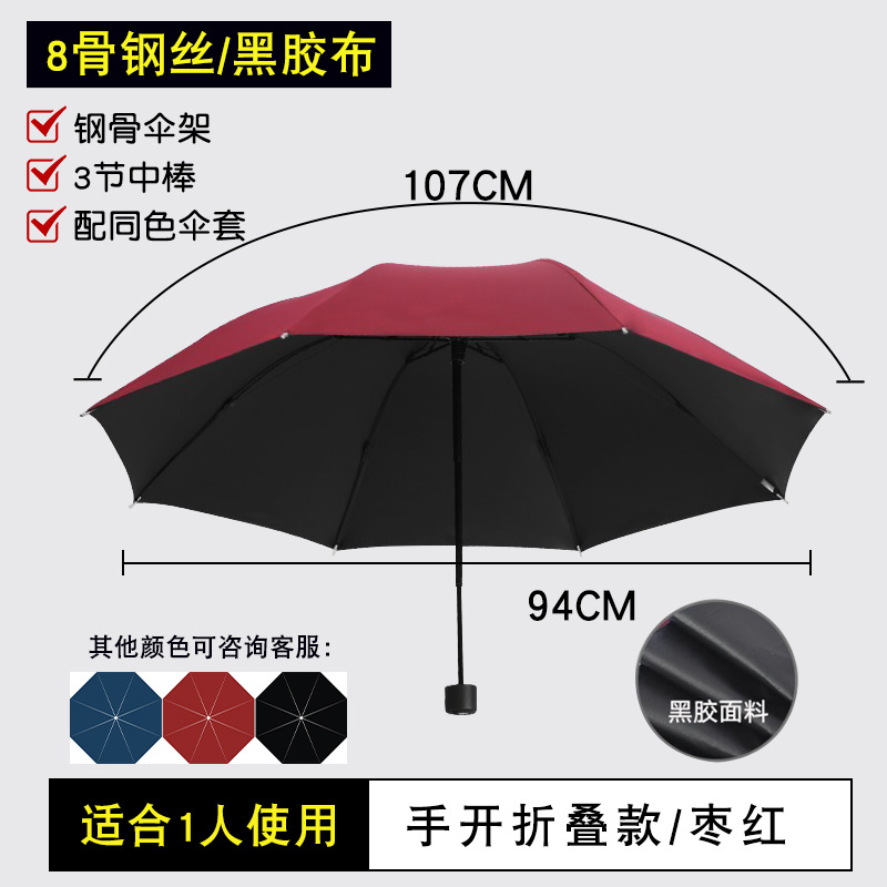 • 접는 우산: 8개 갈비뼈, 손으로 열 수 있는 검정색 접착제로 강화 및 두꺼워짐
