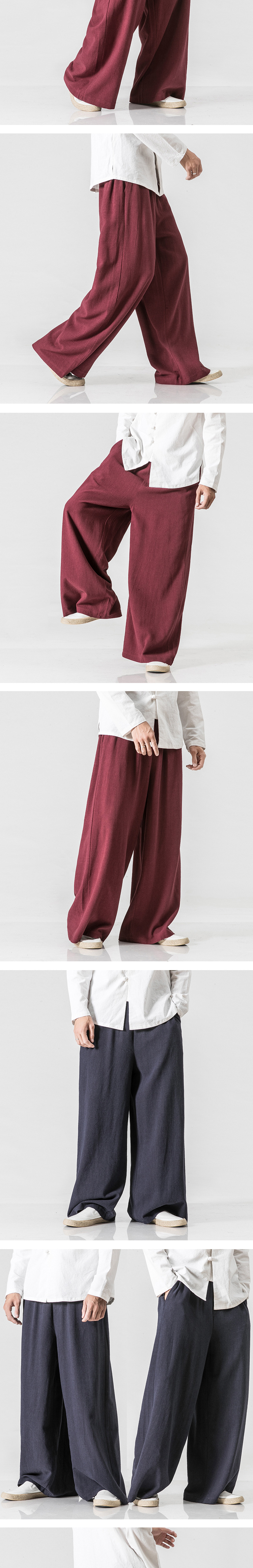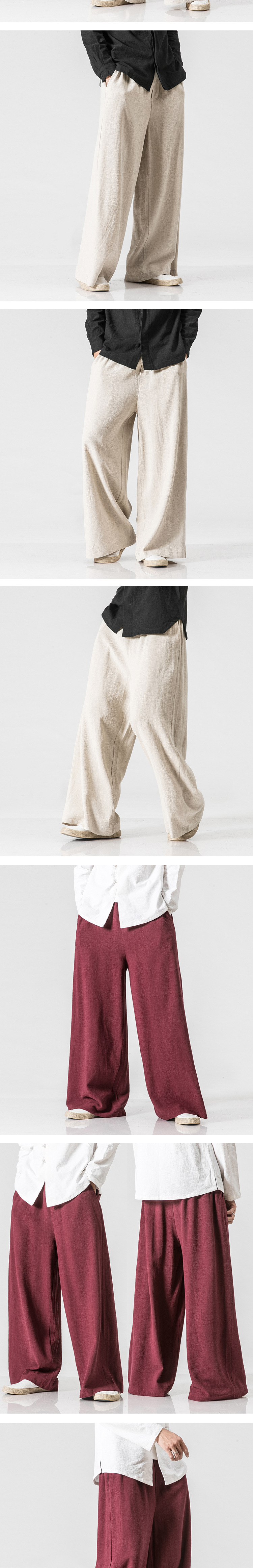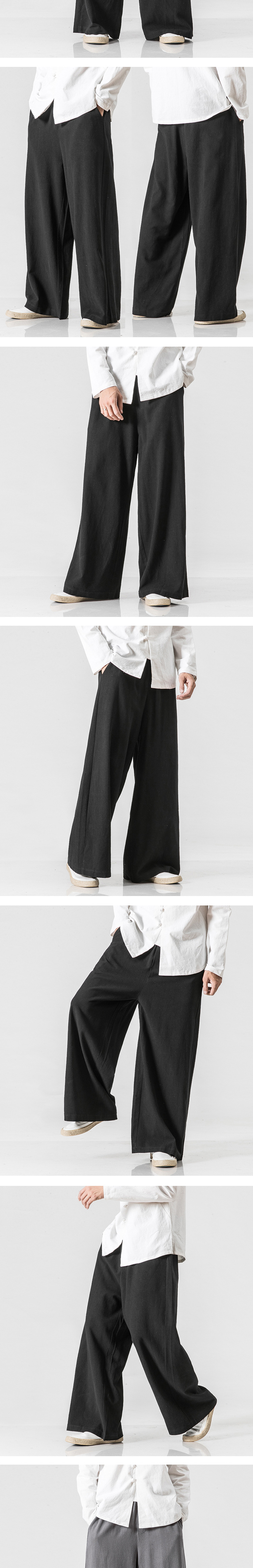 2025 봄/여름 남성용 면마 캐주얼 라지컷 팬츠, 에스닉 스타일 대형 사이즈 드롭컷 롱 팬츠, 루즈핏 스커트 팬츠, 해외배송