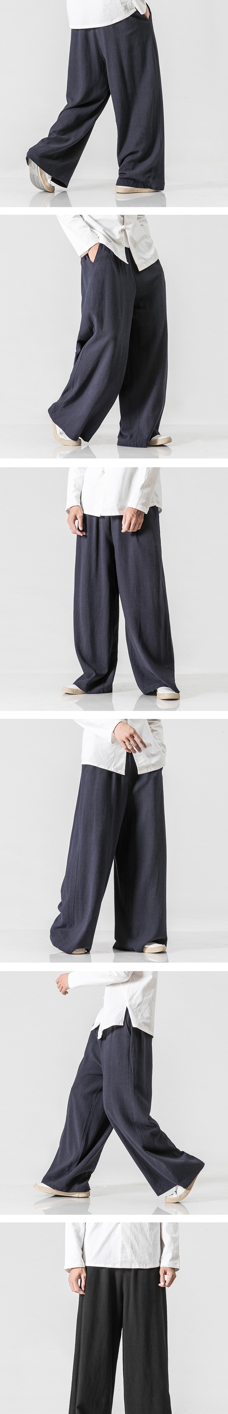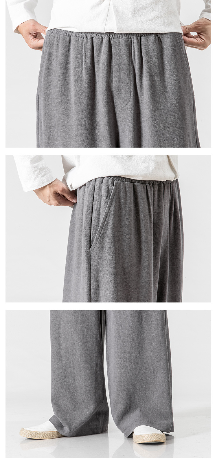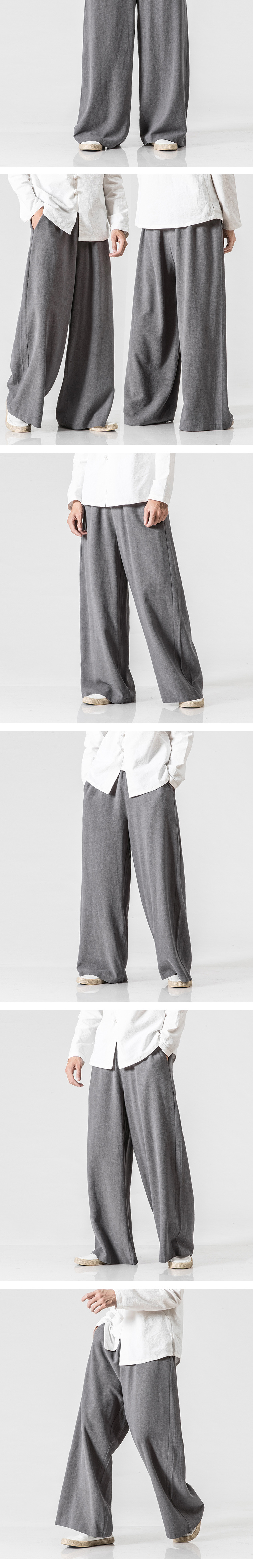 2025 봄/여름 남성용 면마 캐주얼 라지컷 팬츠, 에스닉 스타일 대형 사이즈 드롭컷 롱 팬츠, 루즈핏 스커트 팬츠, 해외배송
