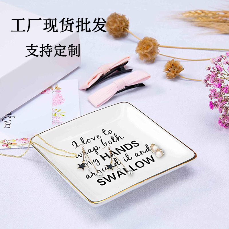 아마존 외국 무역 사각 세라믹 트레이 사각 접시 보석 접시 욕실 반지 보석 저장 접시 추적 금 가장자리