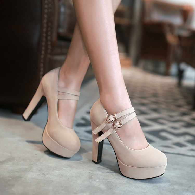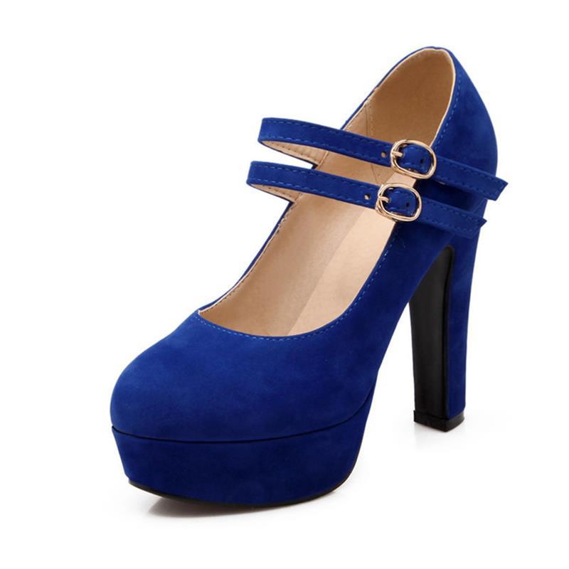 31-47 사이즈 코드 방수 플랫폼 슈퍼 하이힐 얕은 입 라운드 헤드 버클 숙녀 신발 W75스토어 가기