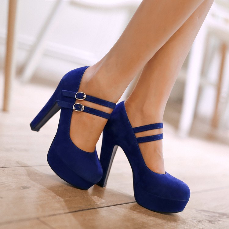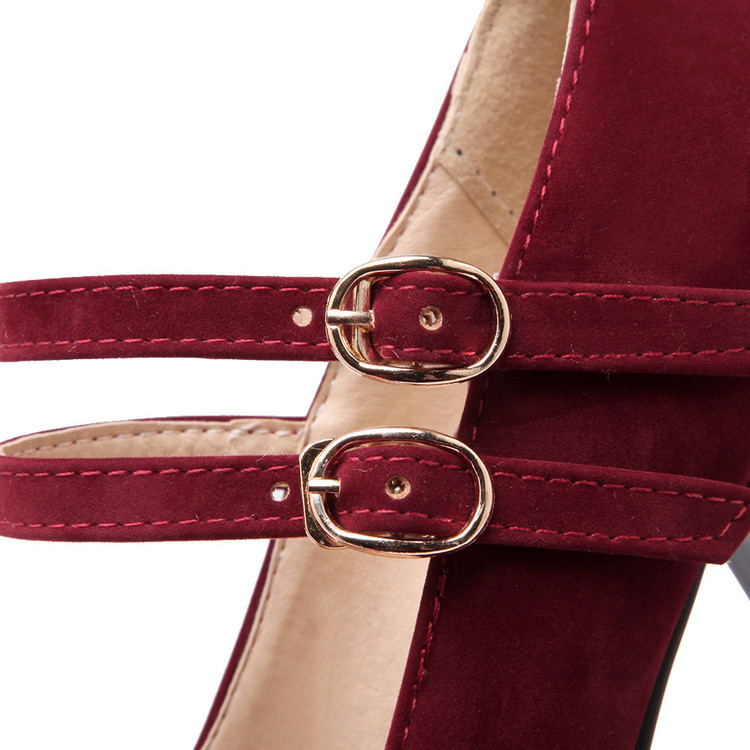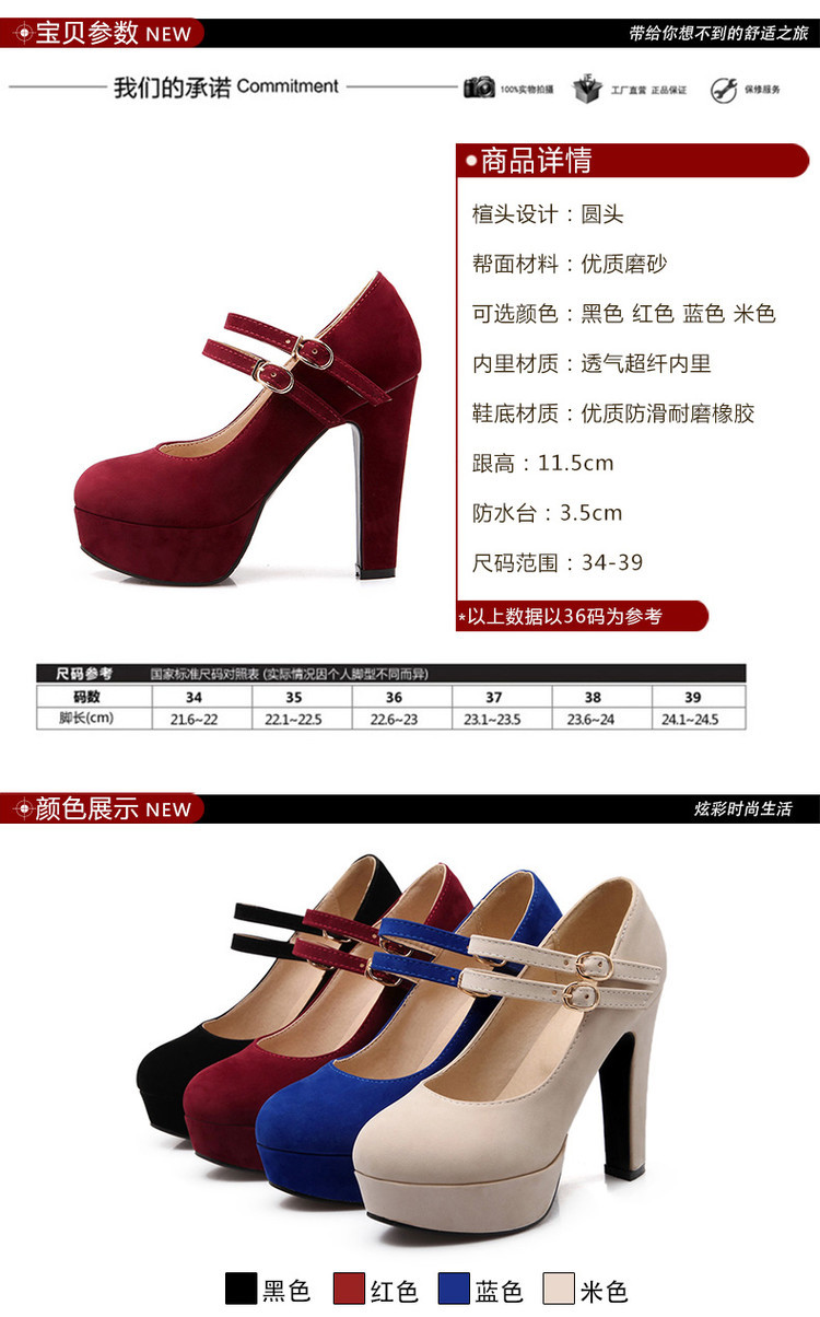 31-47 사이즈 코드 방수 플랫폼 슈퍼 하이힐 얕은 입 라운드 헤드 버클 숙녀 신발 W75
