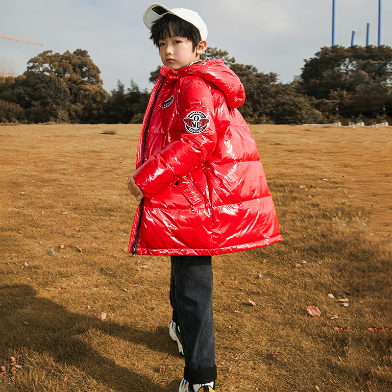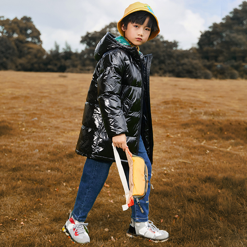 2024년 신형 아동용 경량 다운 재킷, 광택 있는 노워시 남아용 중간 길이 여아용 두꺼운 아동복 중대형 아동용스토어 가기