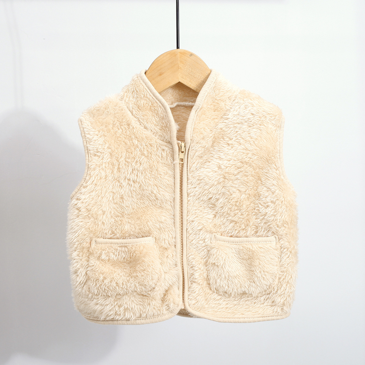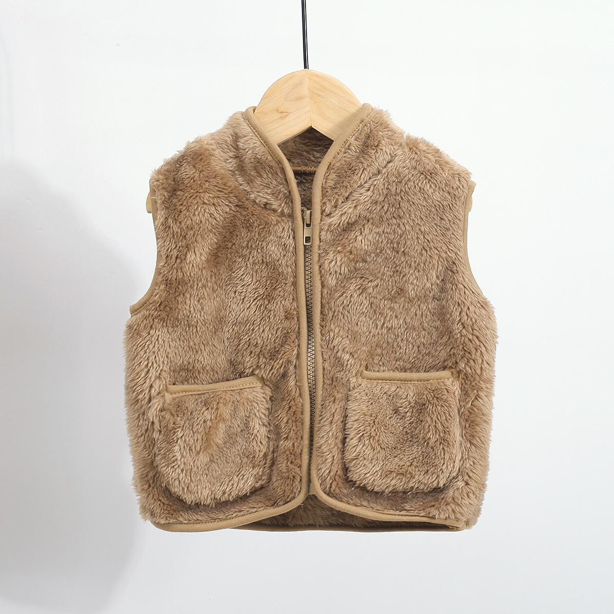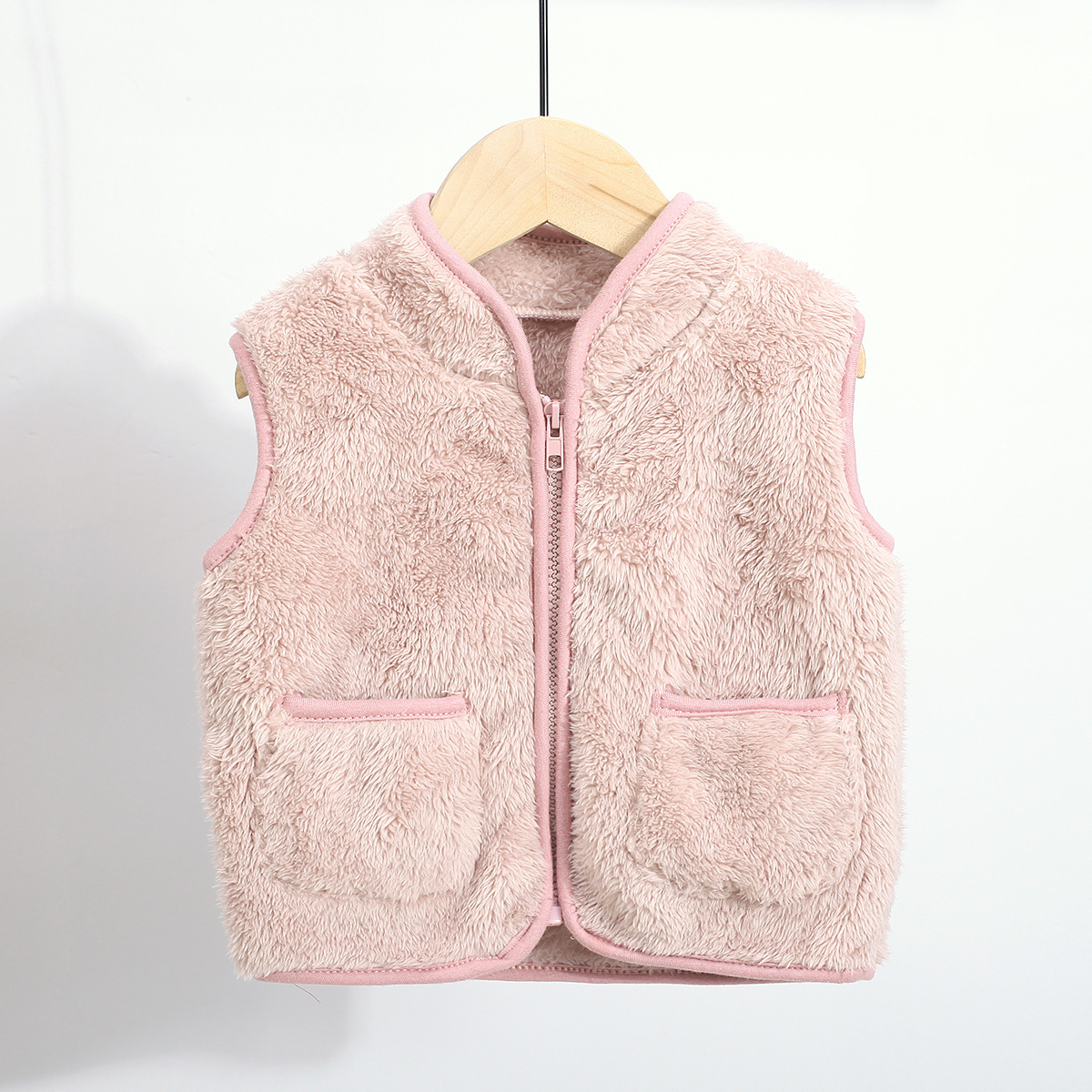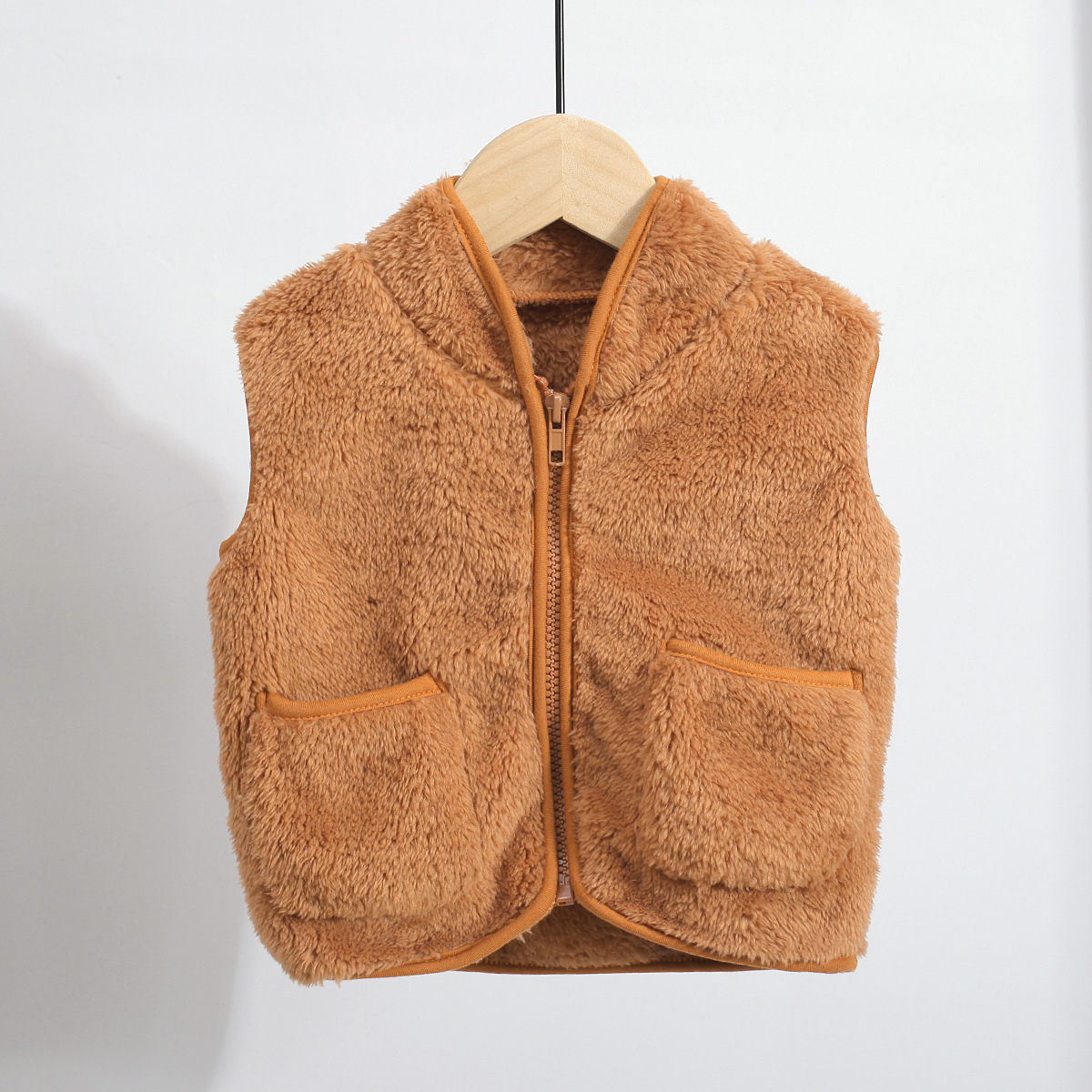 2021 국경 간 유아 및 유아 멀티 컬러 더블 포켓 양면 플러시 라인 지퍼 조끼 소년과 소녀를위한
