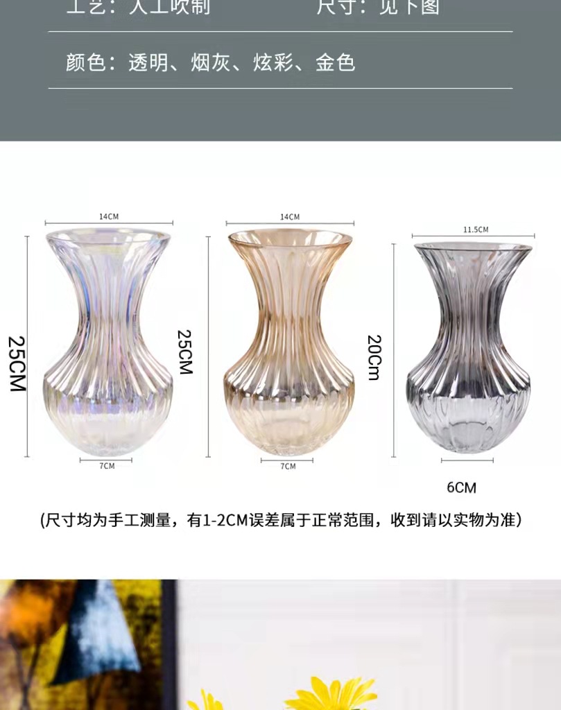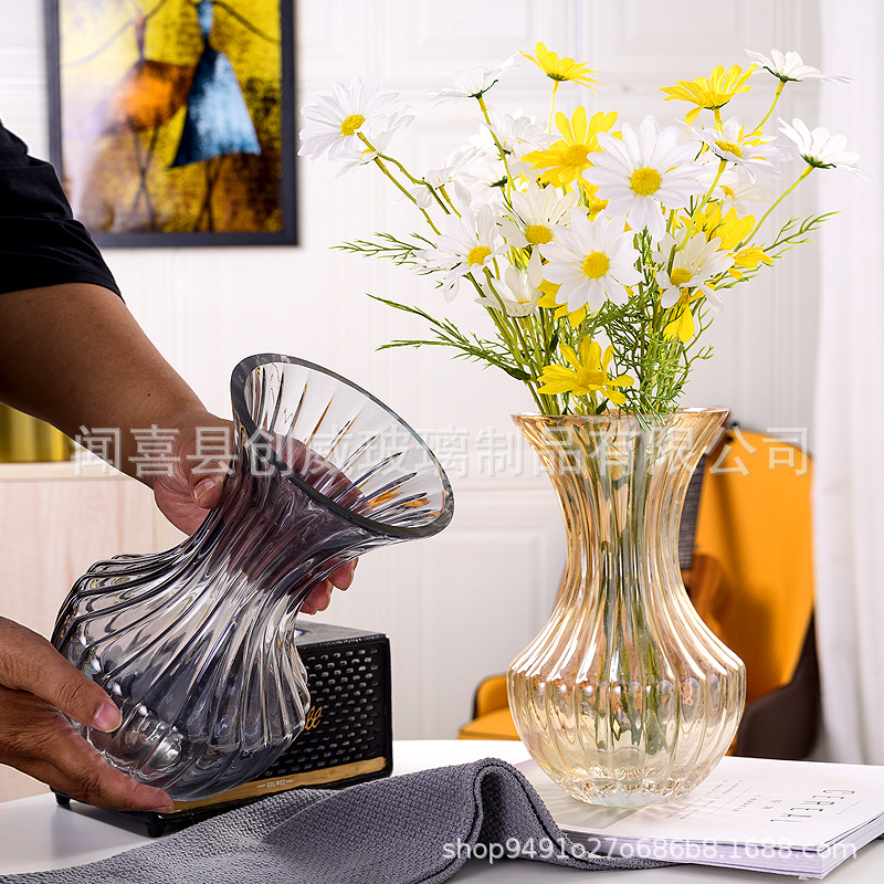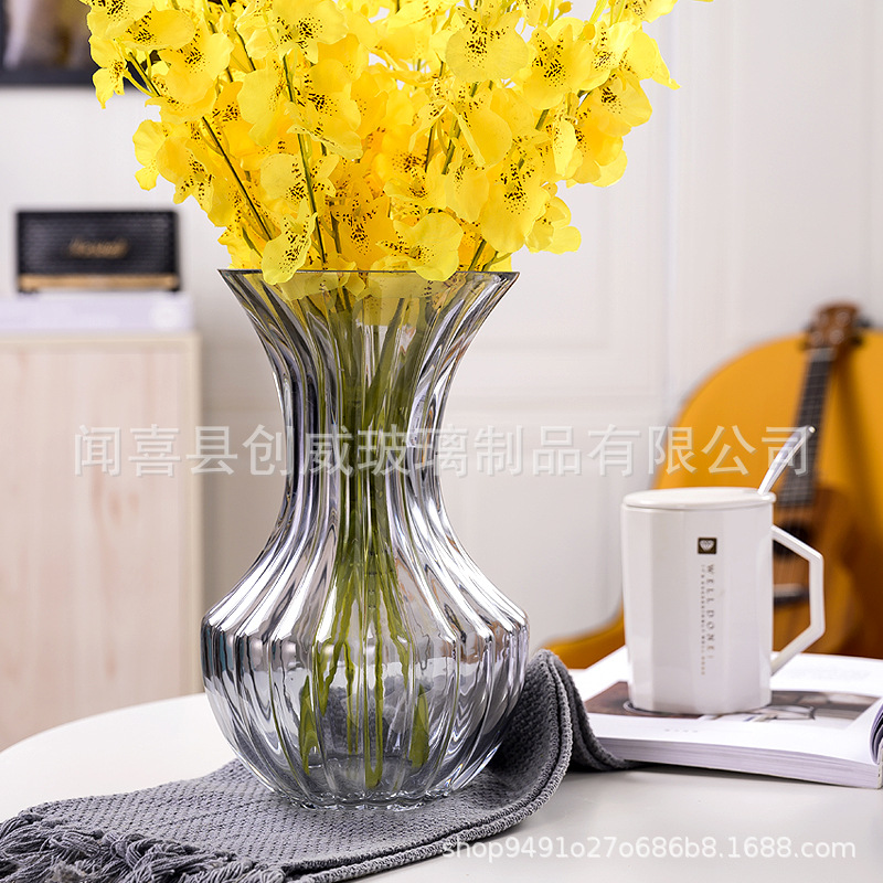 공장 현장 도매 허리 세로 가장자리 투명 유리 꽃병 북유럽 간단한 가정 장식 장식품 꽃꽂이 도구