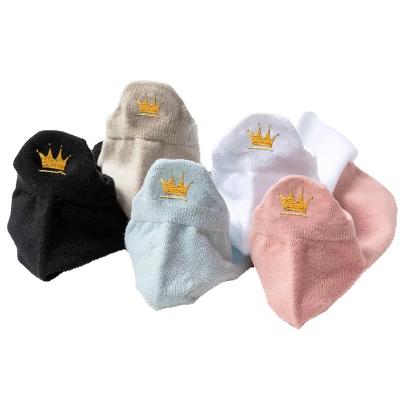 크라운 자수 양말 어린이 짧은 튜브 봄과 여름 얇은 얕은 입 통기성 일본 유행 귀여운 단색 보이지 않는 커플 보트 양말