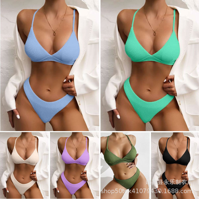 2025 푸다치 여성용 수영복, 사각팬티 수영복, 여성용 분리형 수영복, 스트라이프 무지 비키니, 속건성스토어 가기
