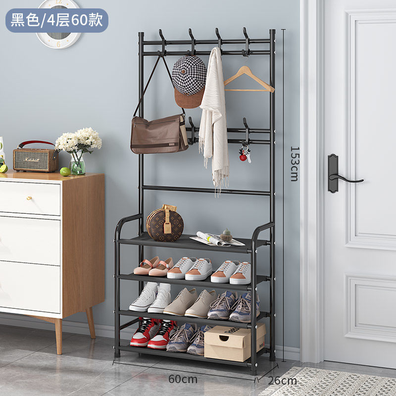가정용 새로운 이동식 간단한 코트 랙 조합 바닥 유형 통합 옷 랙 현대 간단한 신발 랙 가구