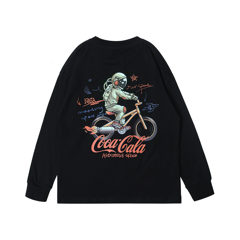 2025 가을 아동 티셔츠 개성있는 중대형 아동 우주비행사 프린트 인스 스타일 남녀공용 순면 상의 트렌디 브랜드 아동복스토어 가기