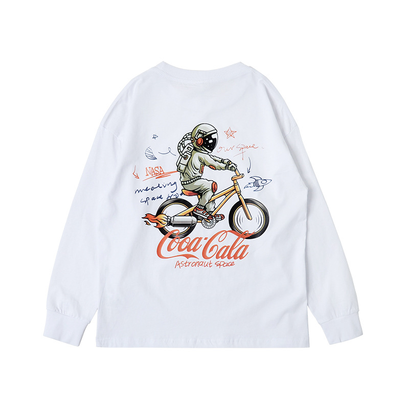 2025 가을 아동 티셔츠 개성있는 중대형 아동 우주비행사 프린트 인스 스타일 남녀공용 순면 상의 트렌디 브랜드 아동복