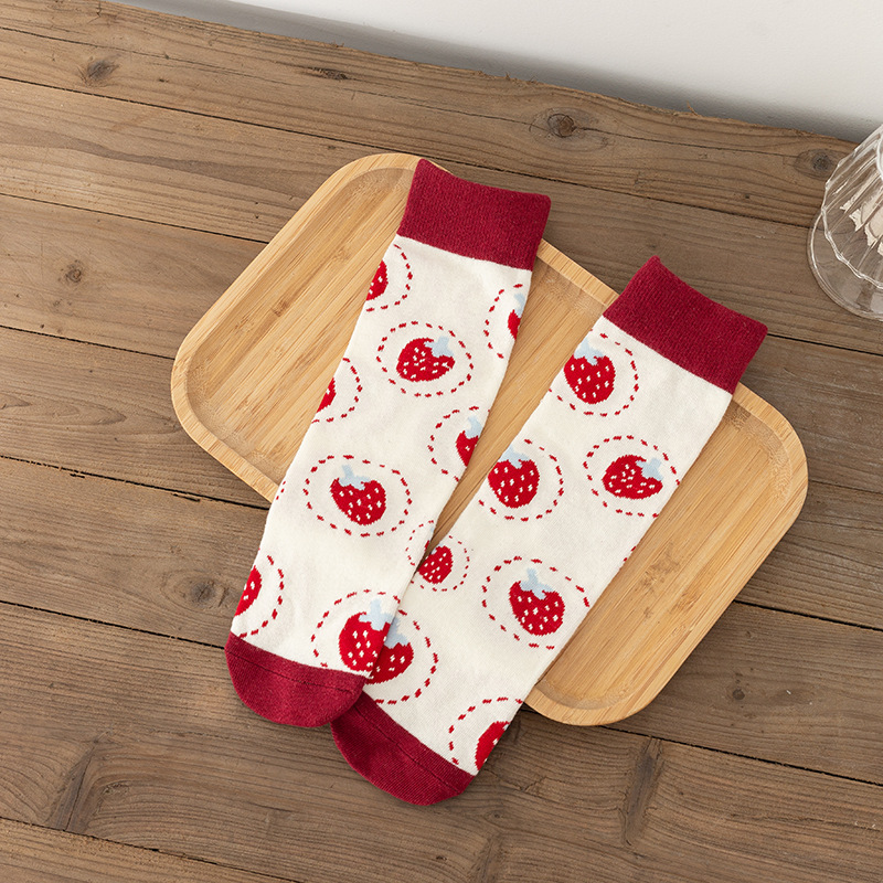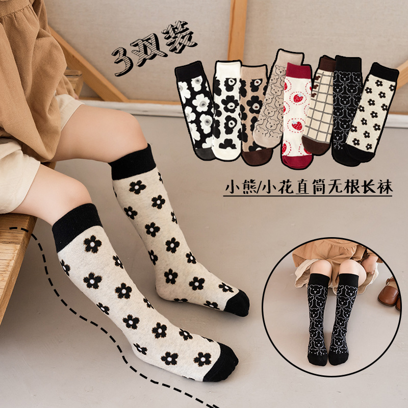 어린이용 종아리 양말, 가을 겨울 신상품, 귀여운 딸기와 곰돌이 롱삭스, 코마면 소재, 달콤한 여아용 힐리스 롱삭스스토어 가기