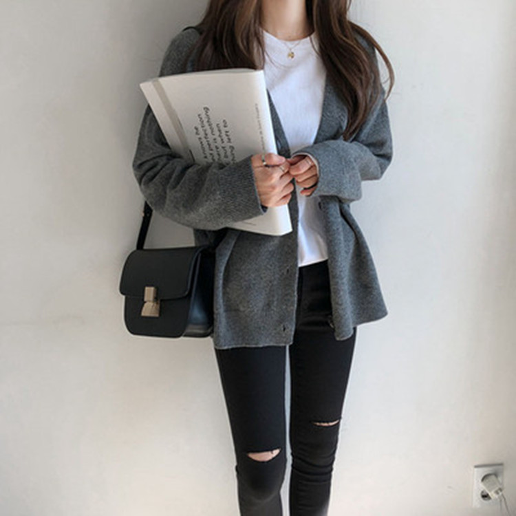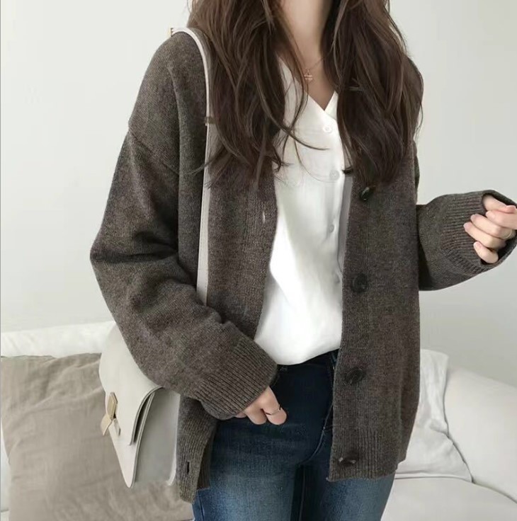 니트 가디건 여성용 2024년 신상 짧은 스타일 초봄 가을 단색 루즈핏 니트 여성 스웨터스토어 가기