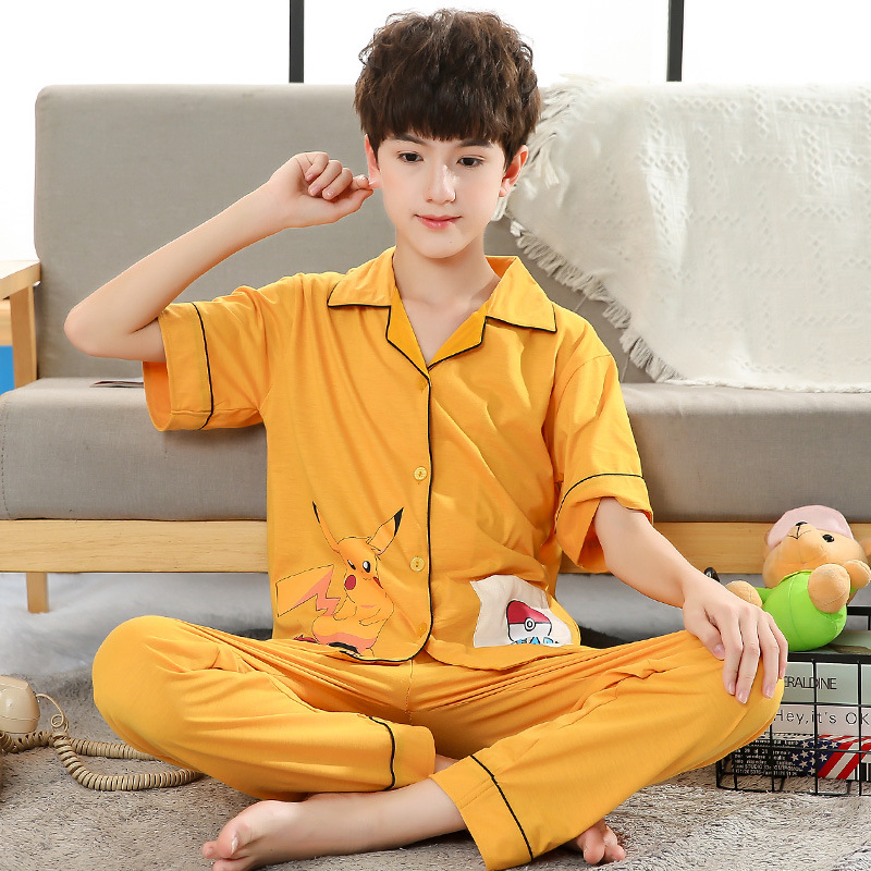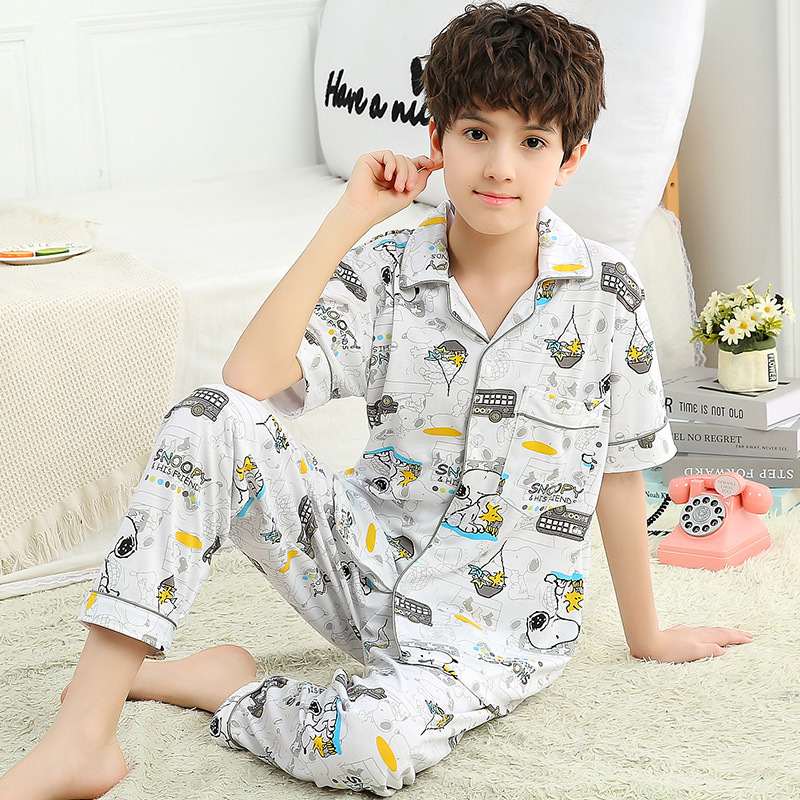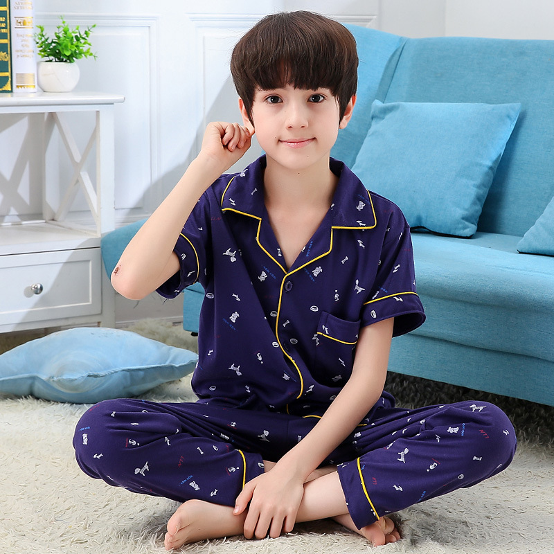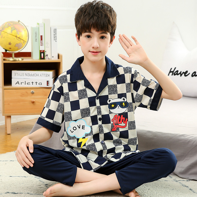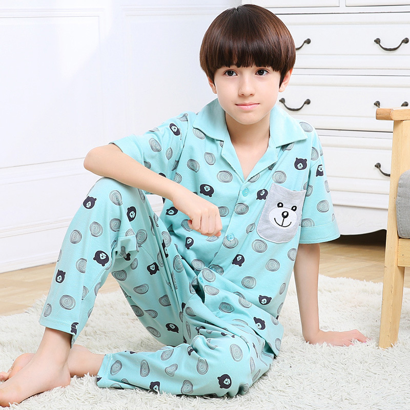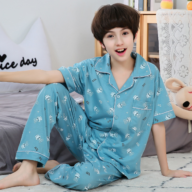 가을과 겨울 니트 어린이 면 잠옷 카디건 세트 소년 큰 어린이 두꺼운 따뜻한 만화 가정 옷 도매스토어 가기