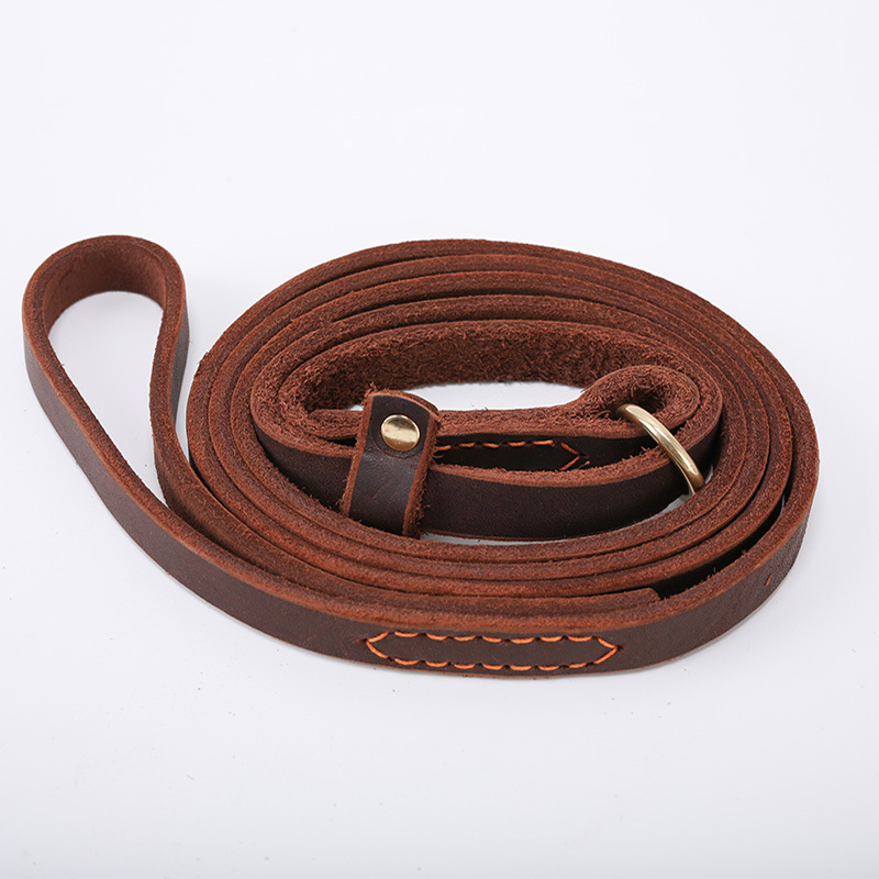 도매 1 층 소가죽 견인 로프 P 체인 통합 방폭 펀칭 개 체인 독일 셰퍼드 개 훈련 봉합 소가죽 로프