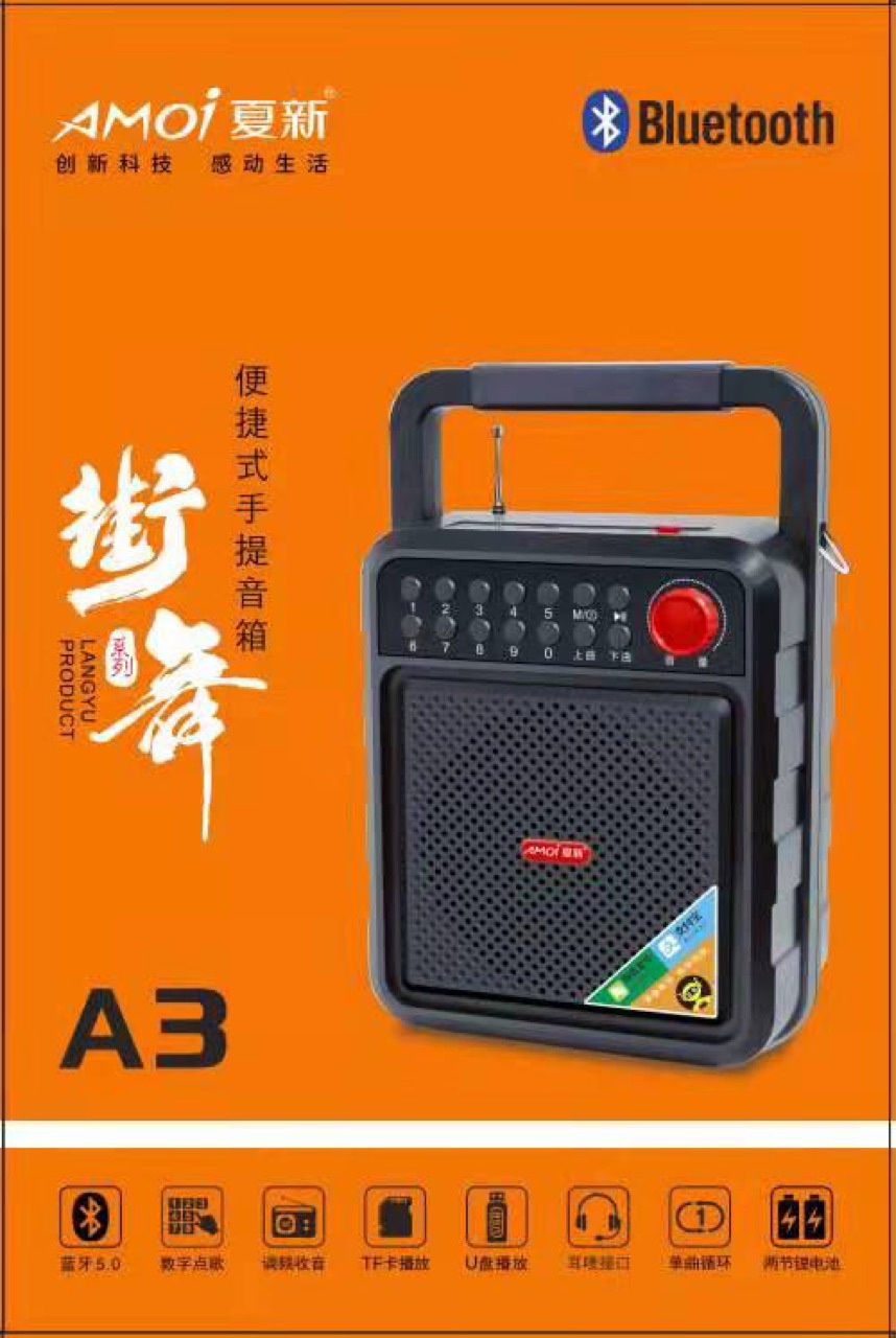夏新A3手提音响,出厂装2个电池,一条充电线,整箱30台;2025年11月后全部换成金业品牌,夏新品牌停产,不再通知;