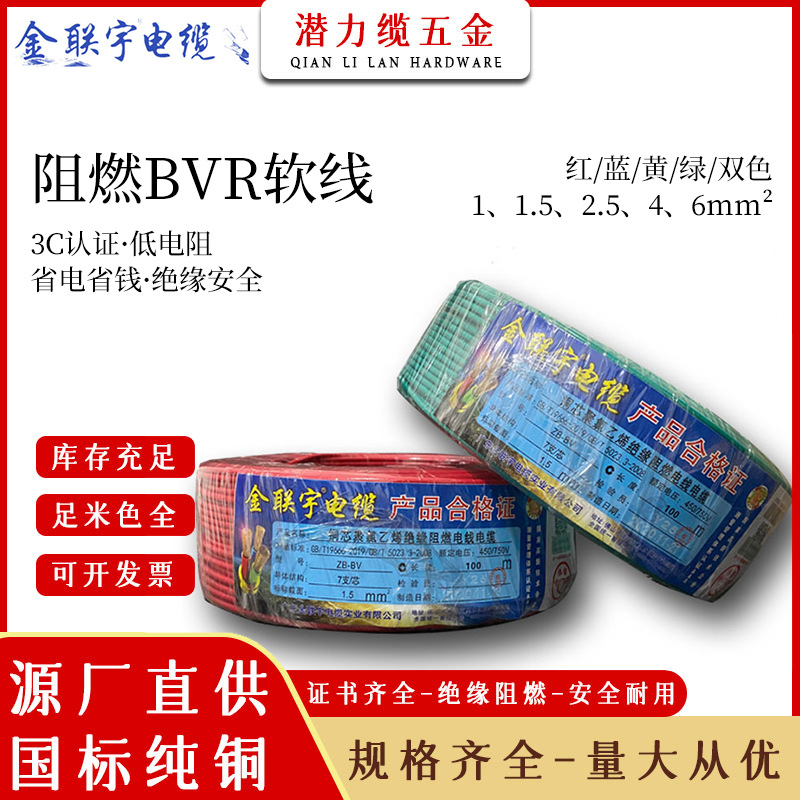 광동 Jinlianyu 케이블 와이어 BVR 멀티 스트랜드 1.52.56 사각형 유연한 와이어 난연 GB 홈 장식 와이어 구리 코어