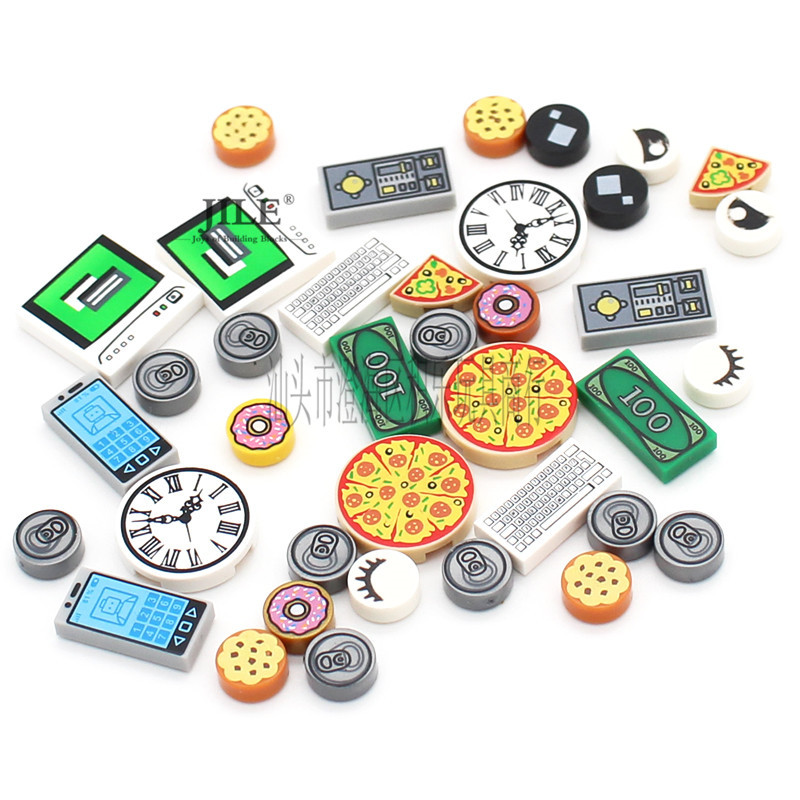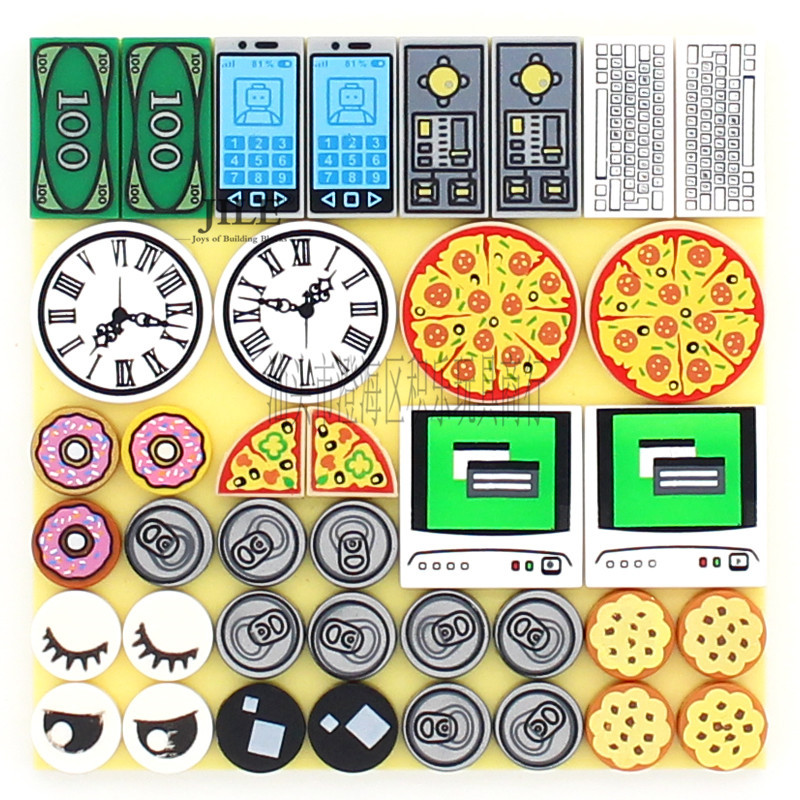 MOC 작은 입자 빌딩 블록 인쇄 식품 컴퓨터 키보드 도로 교통 표지 USD DIY 부품