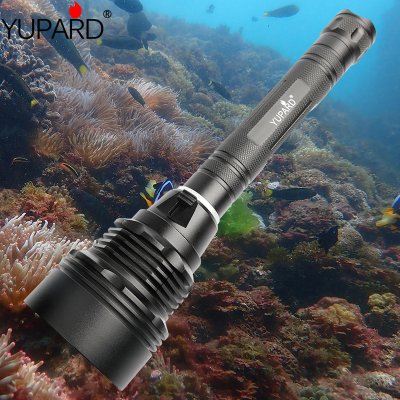 P90 강한 빛 다이빙 손전등 슈퍼 밝은 수중 야간 다이빙 해수 개구리 조명 보조 라이트 옐로우 라이트 26650