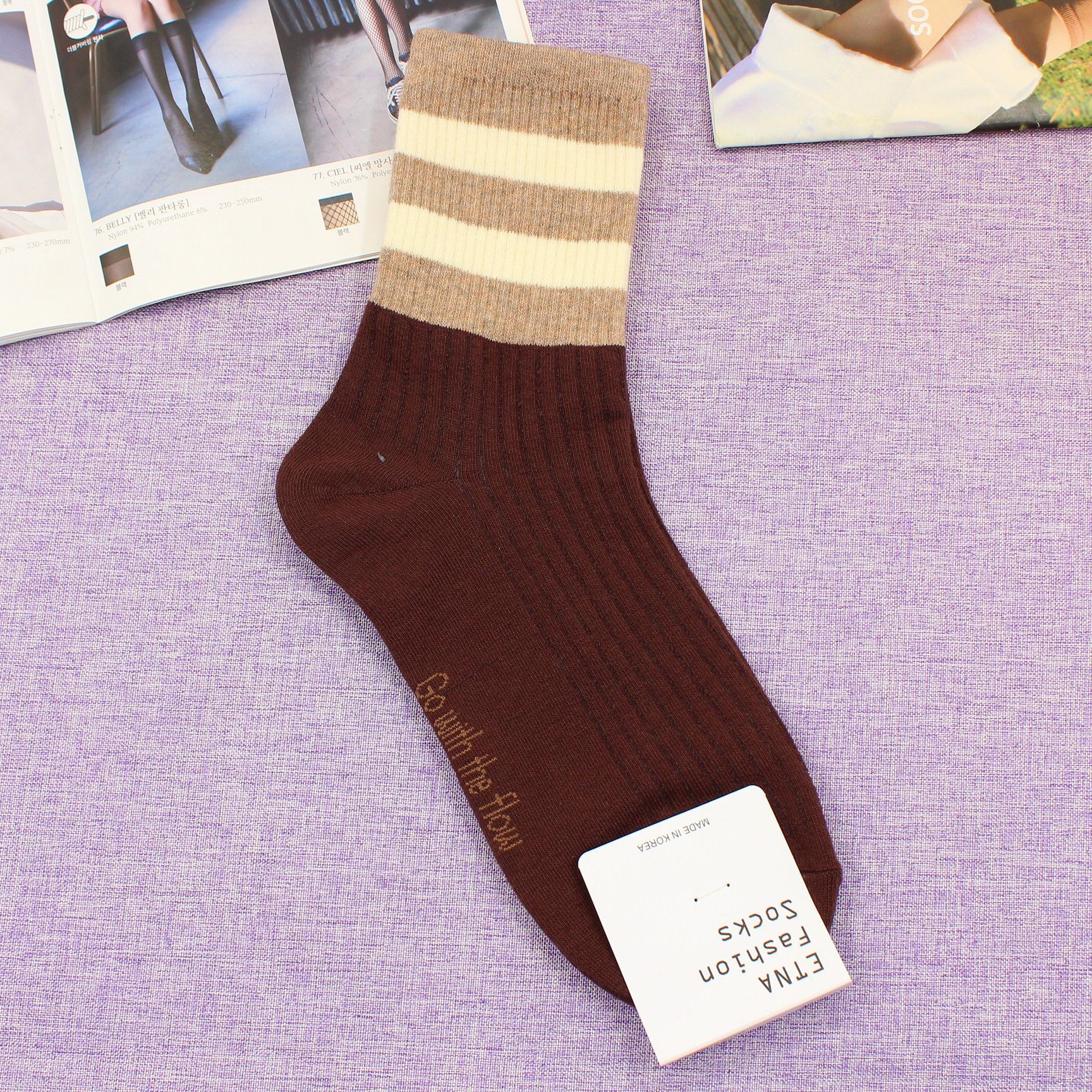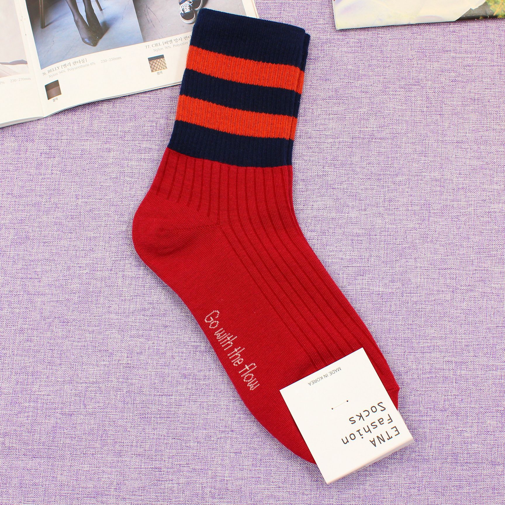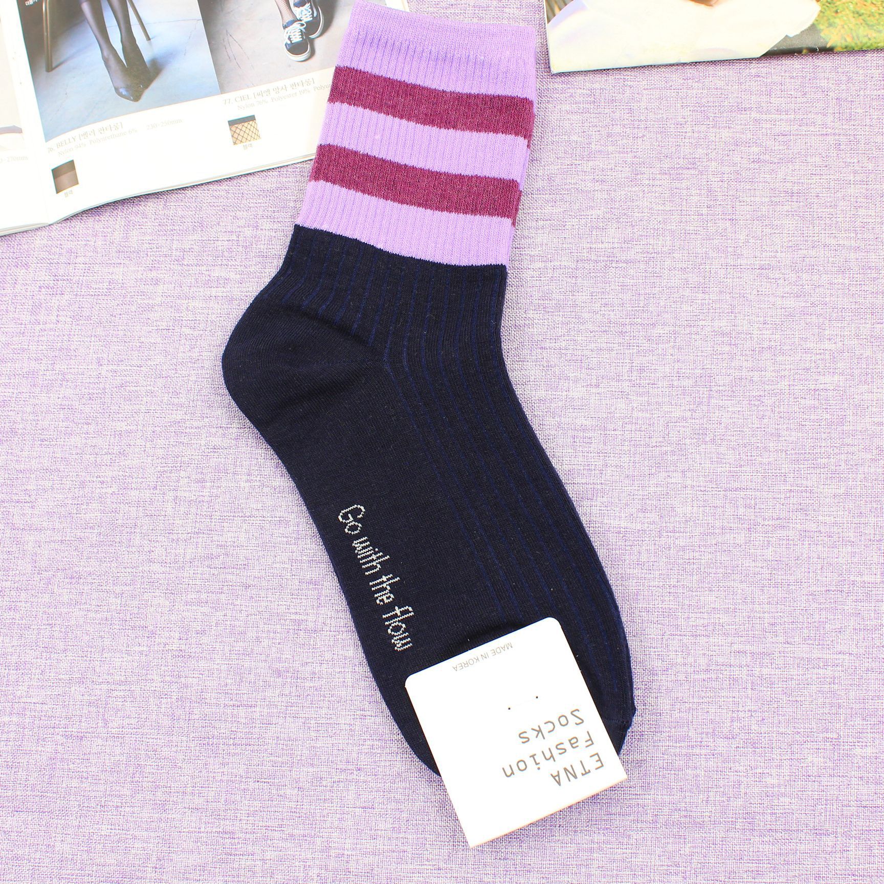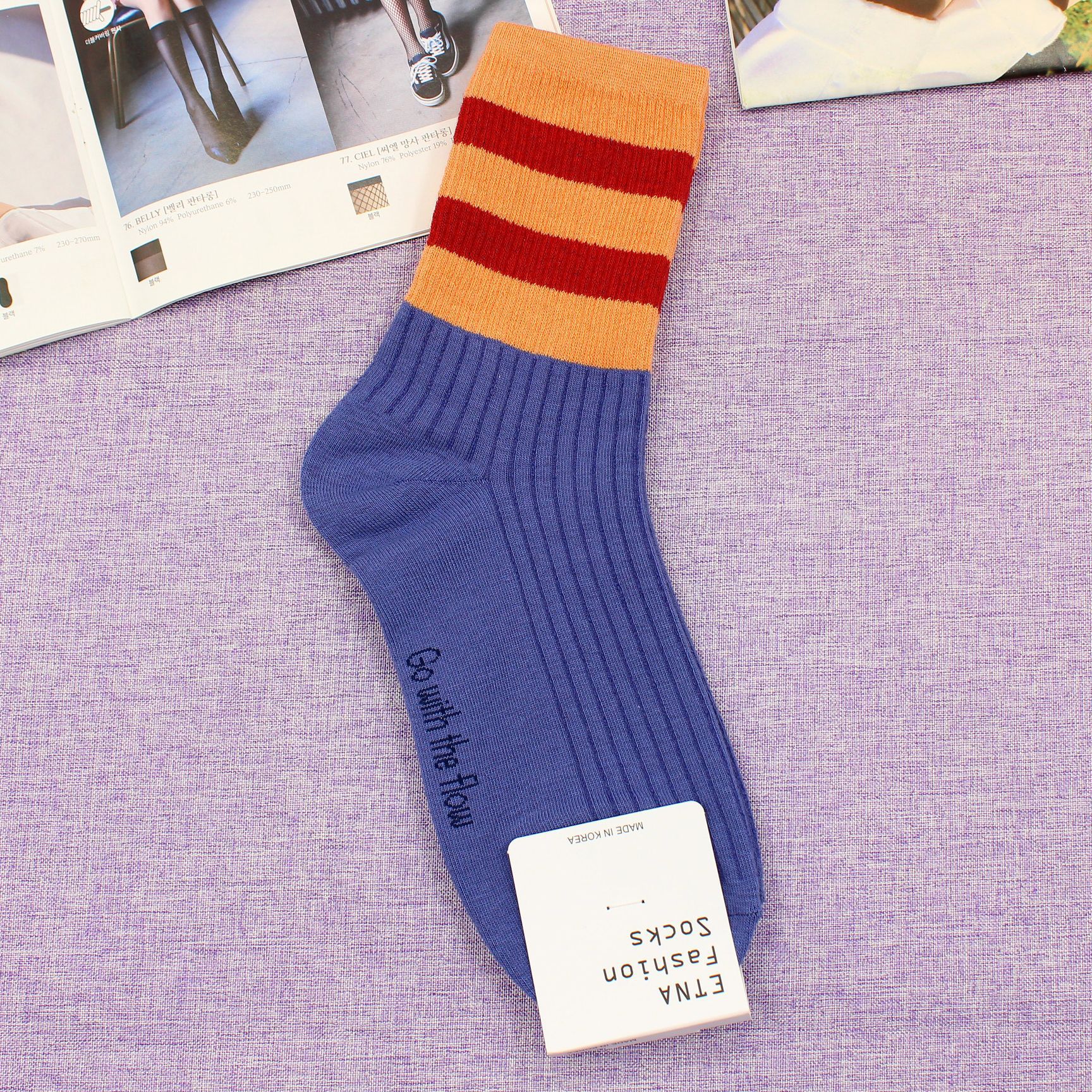 ew279 동대문 한국 양말 도매 여성 양말 가을 겨울 신상 컬러풀한 가로줄무늬 여성 중목 양말 인스타그램 스타일 양말스토어 가기