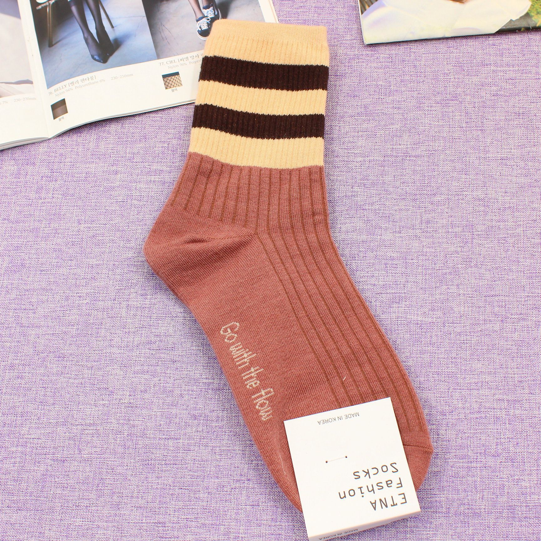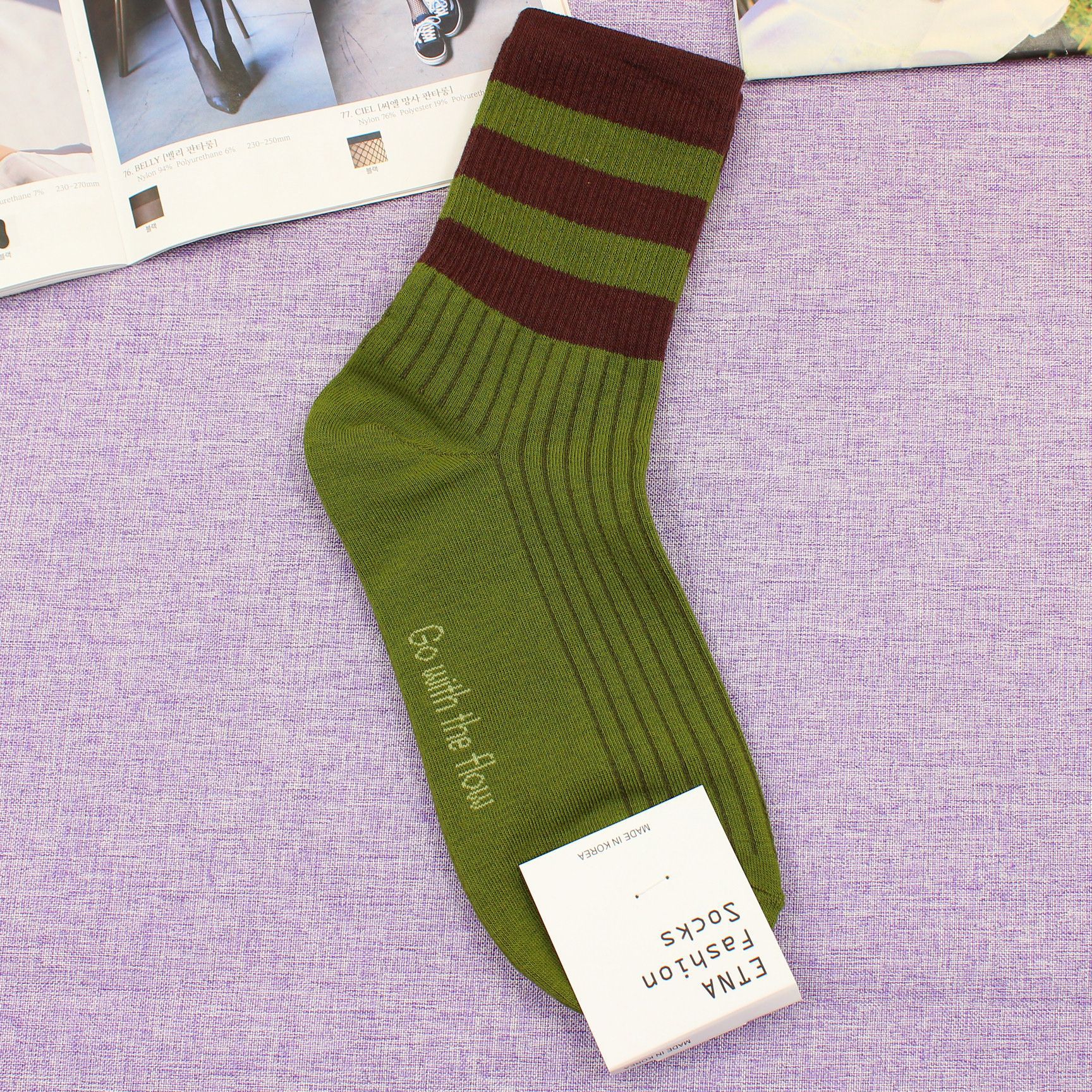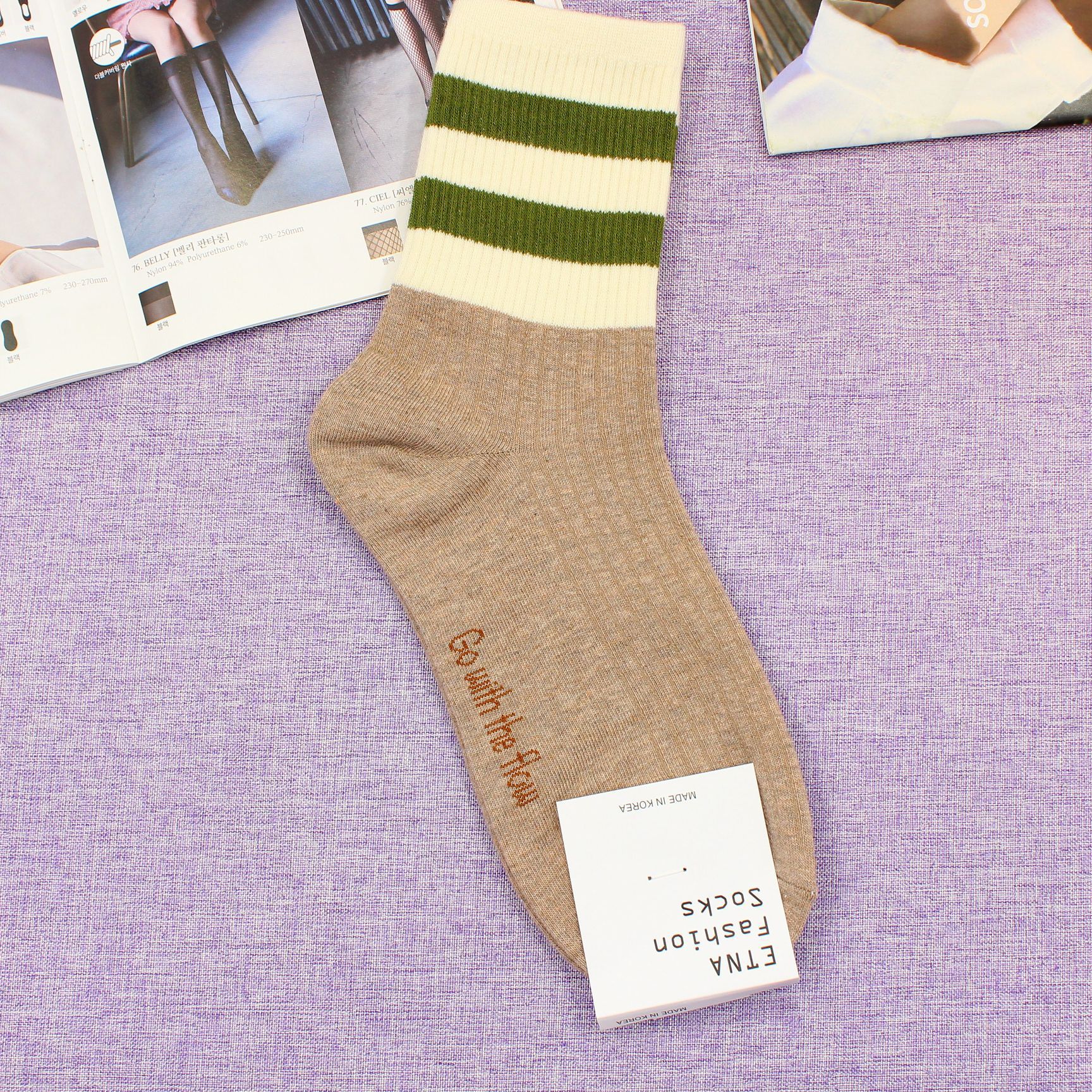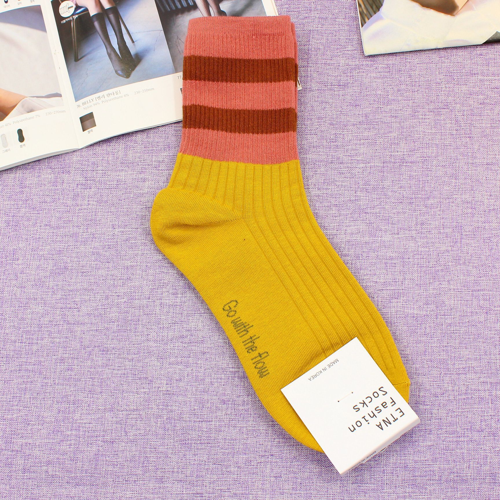 ew279 동대문 한국 양말 도매 여성 양말 가을 겨울 신상 컬러풀한 가로줄무늬 여성 중목 양말 인스타그램 스타일 양말스토어 가기
