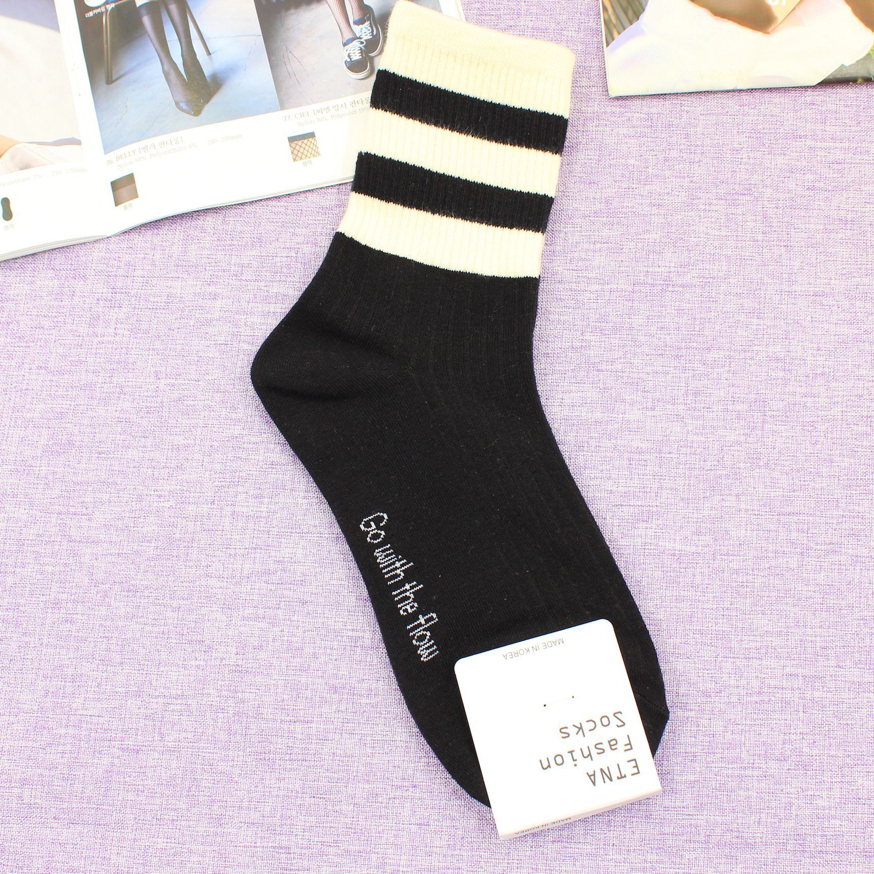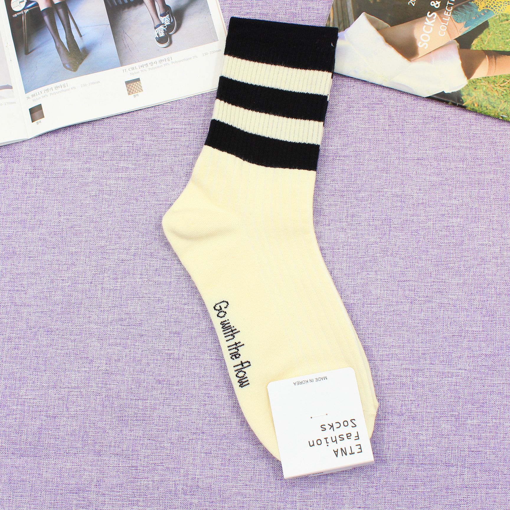 ew279 동대문 한국 양말 도매 여성 양말 가을 겨울 신상 컬러풀한 가로줄무늬 여성 중목 양말 인스타그램 스타일 양말